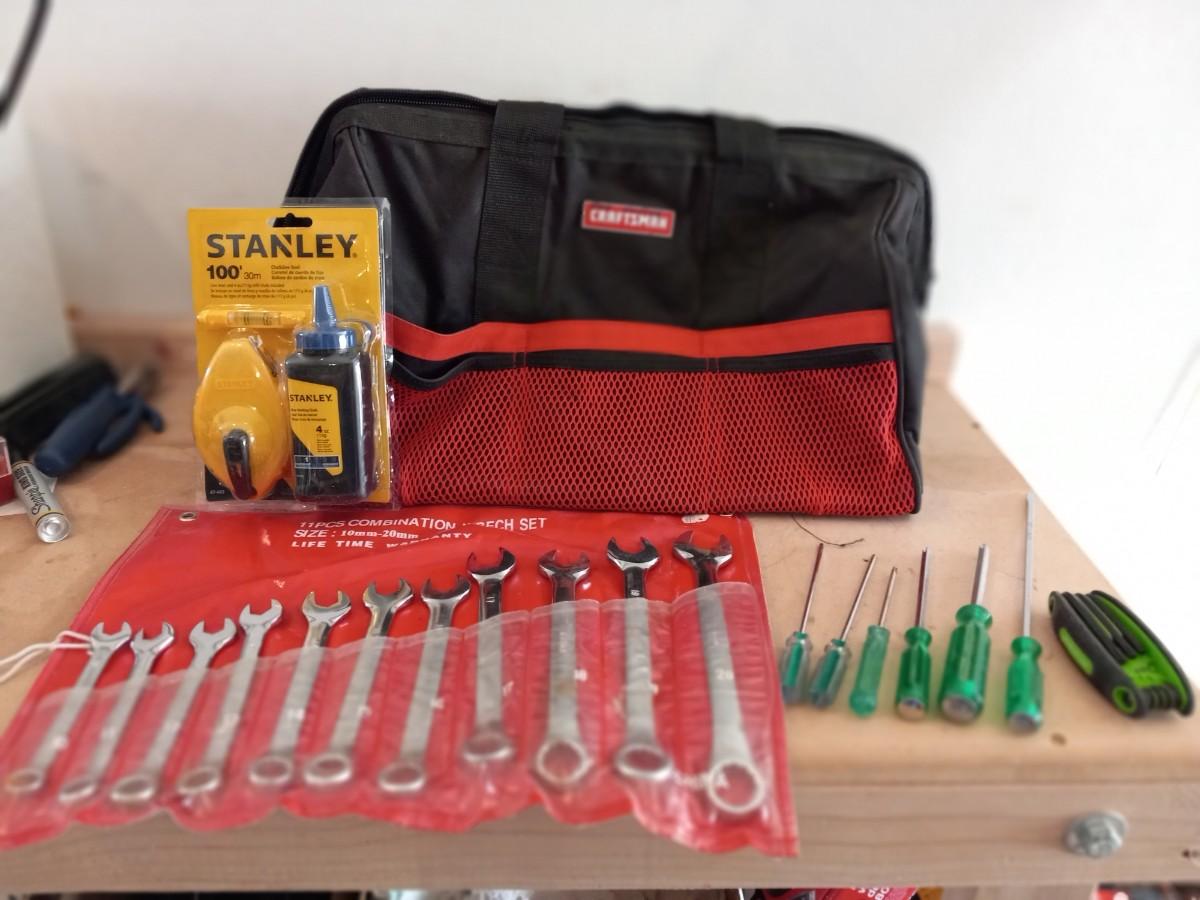 LOT 126 COMBINATION WRENCH SET, CHALKLINE REEL, TOOL BAG AND MORE