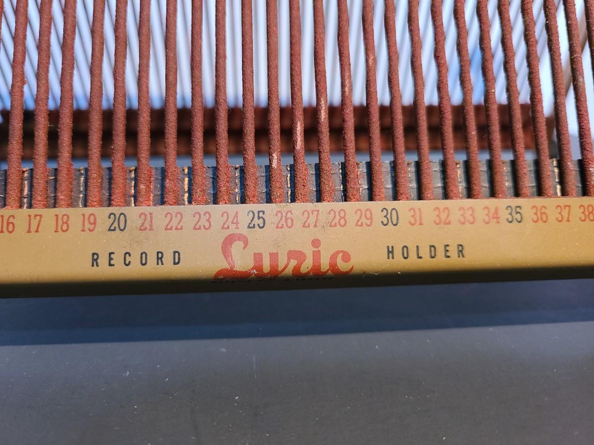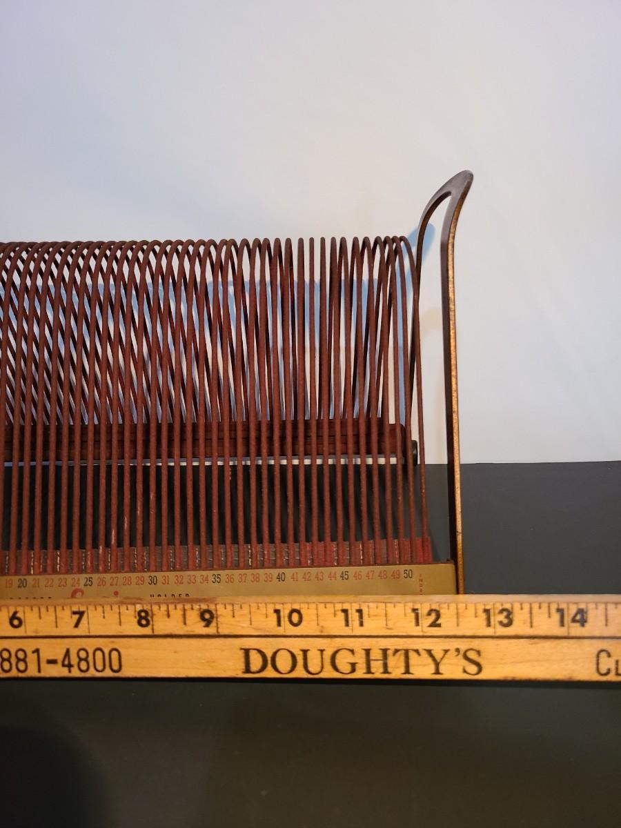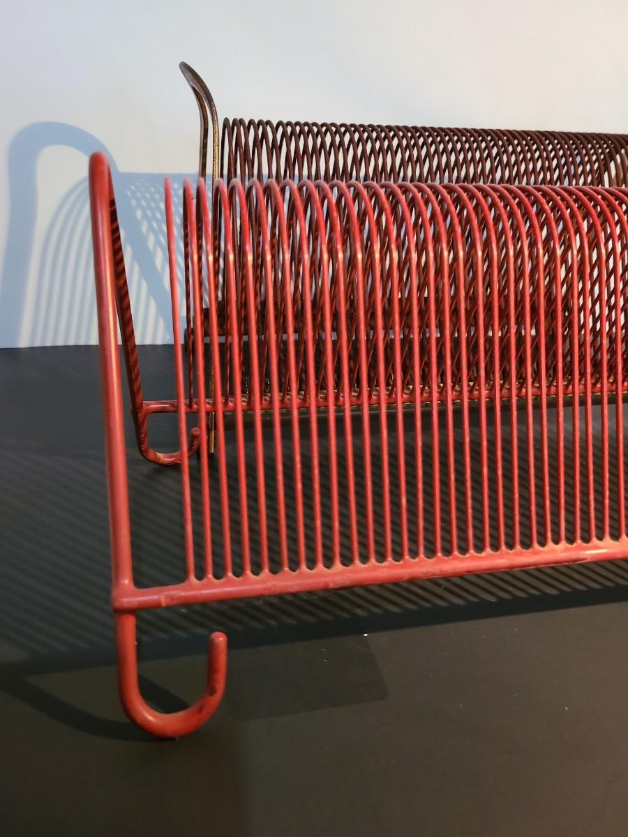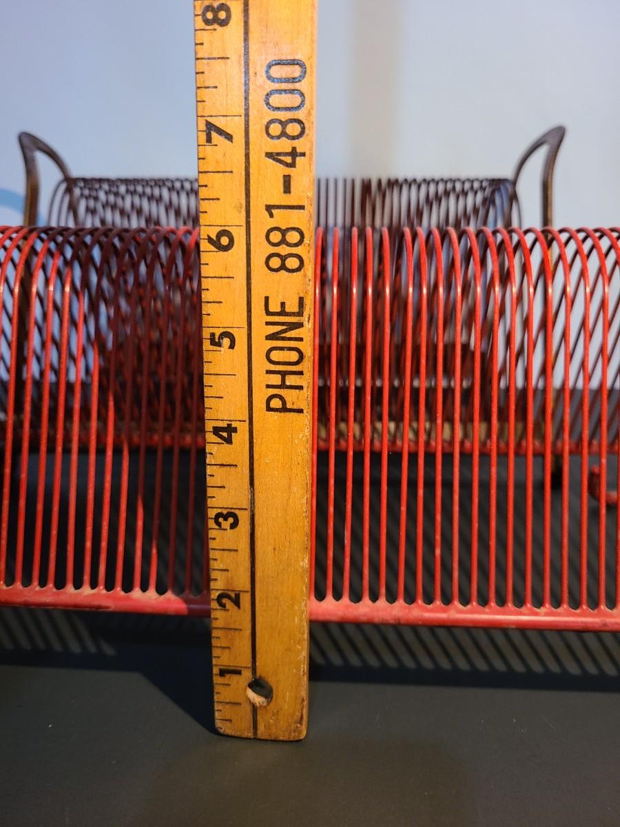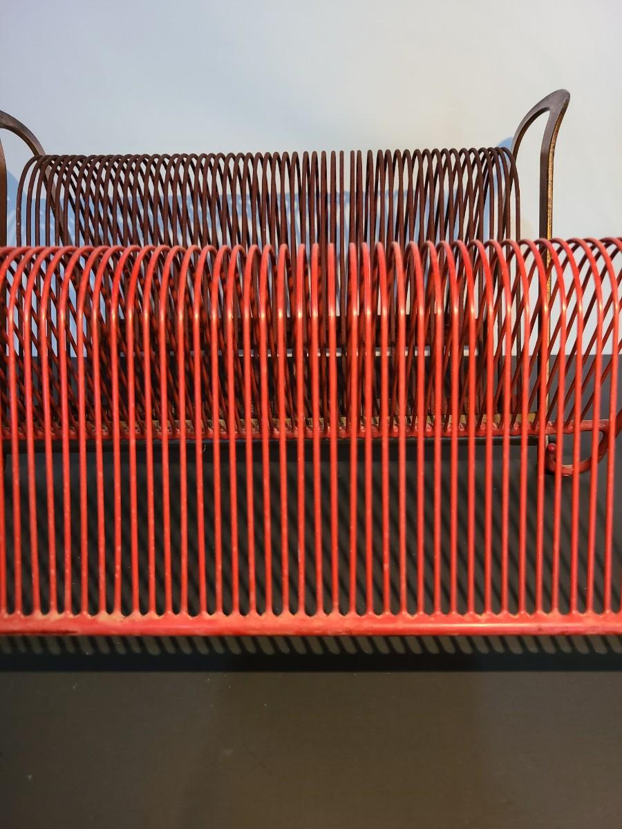 Vintage record hders. Both show wear from age and use. The red one is great as found, the metal Luric shows some age to metal but could be painted a pop of color too. Please see pictures for condition and measurements.