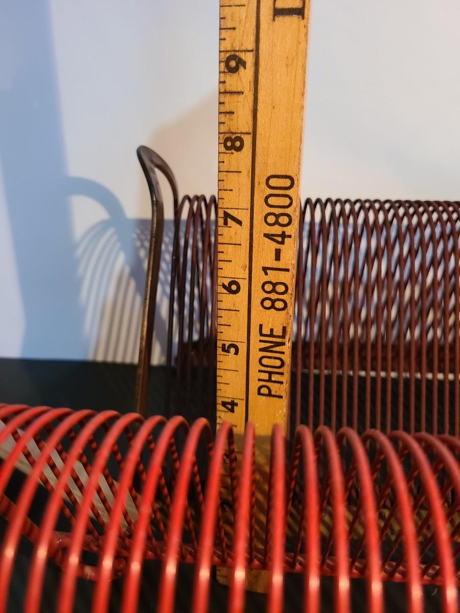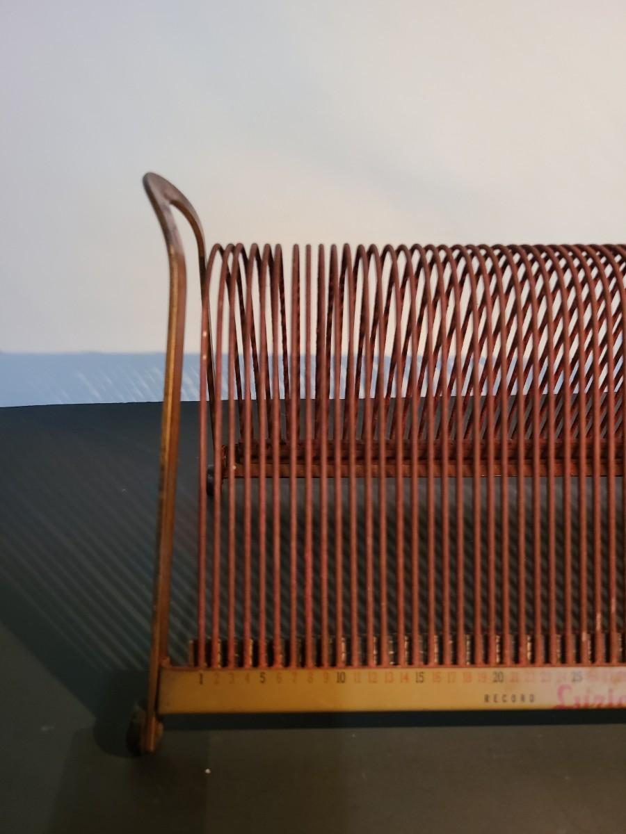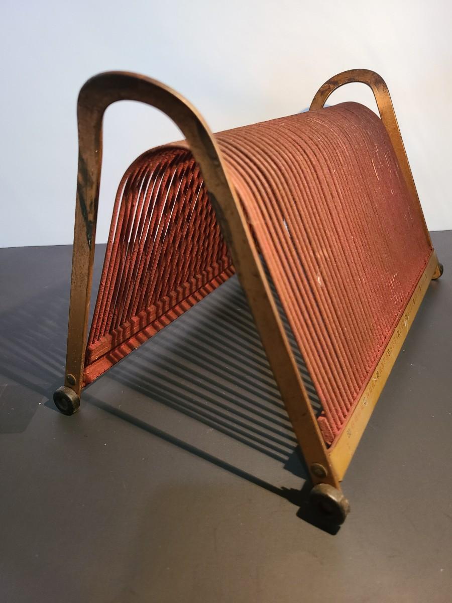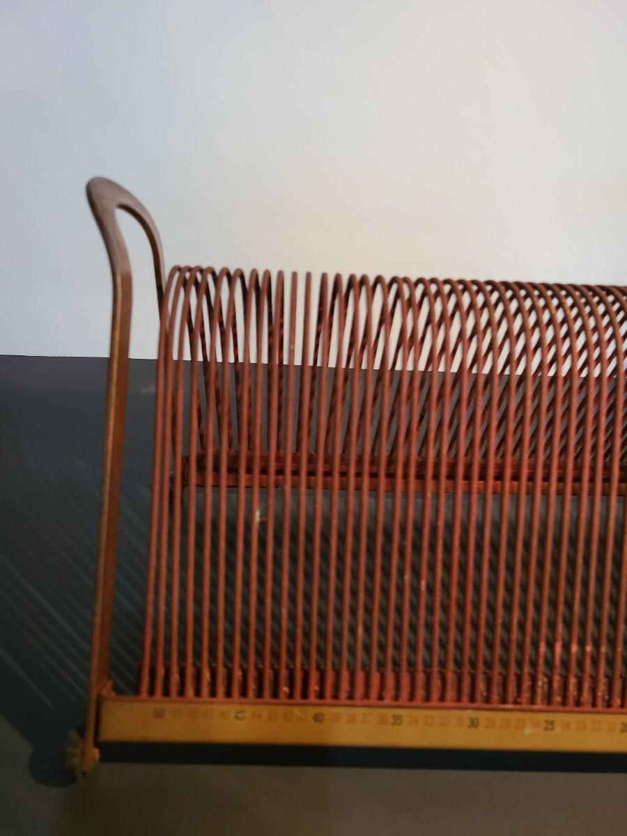 Vintage record hders. Both show wear from age and use. The red one is great as found, the metal Luric shows some age to metal but could be painted a pop of color too. Please see pictures for condition and measurements.