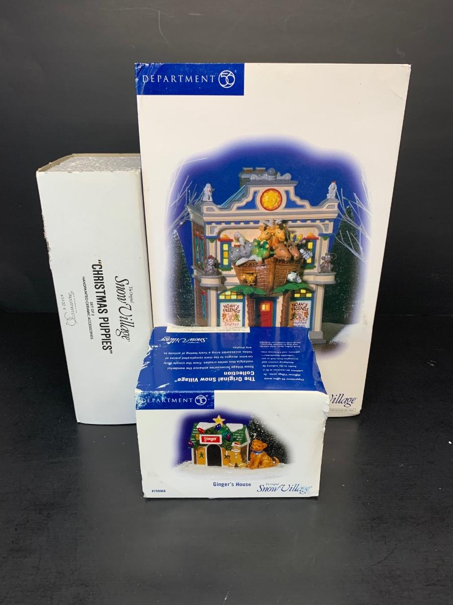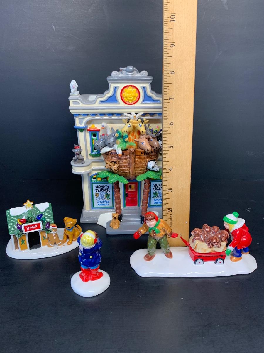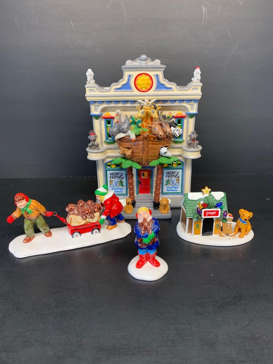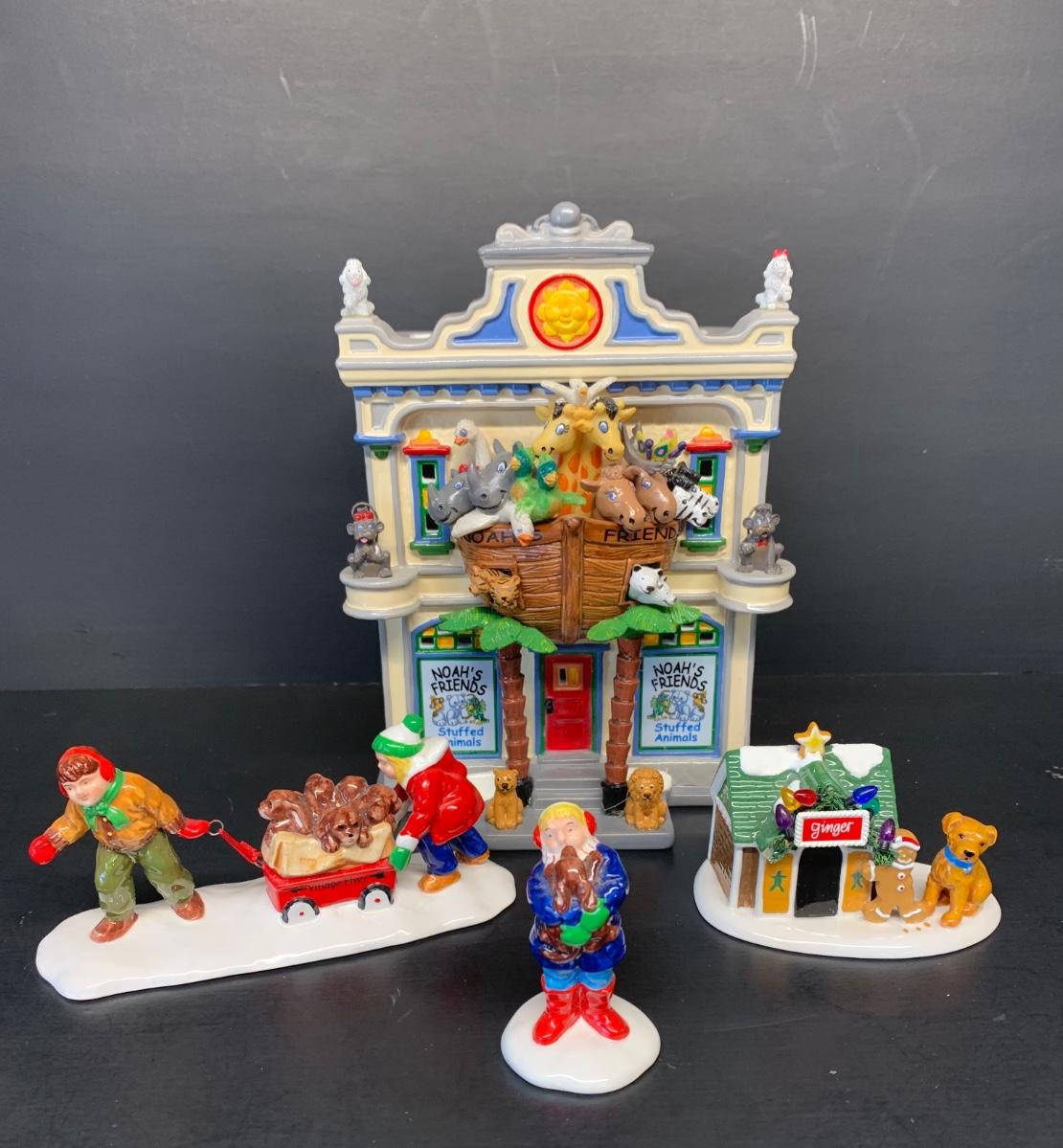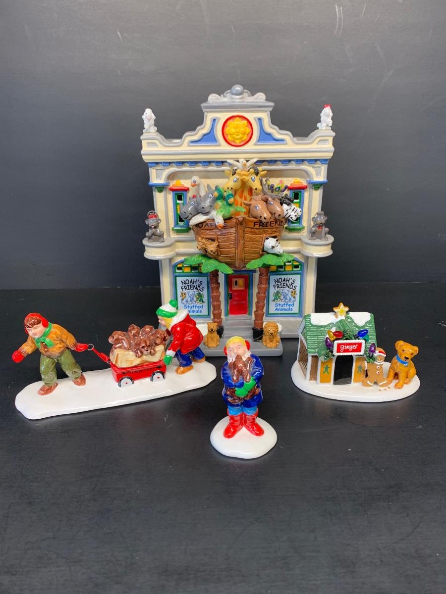 Lot 126R: Dept 56, Noah's Friends Stuffed Animals, Gingers House, Christmas Puppies &