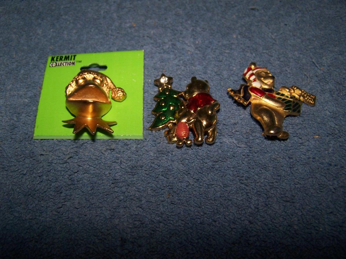 THESE ARE ADORABLE COLLECTABLE WINNIE THE POOH & KERMIT CHRISTMAS PINS!!! MARKED.. WINNIE-1 3/4'' TALL.. SLIGHT WEAR..