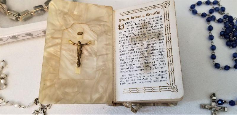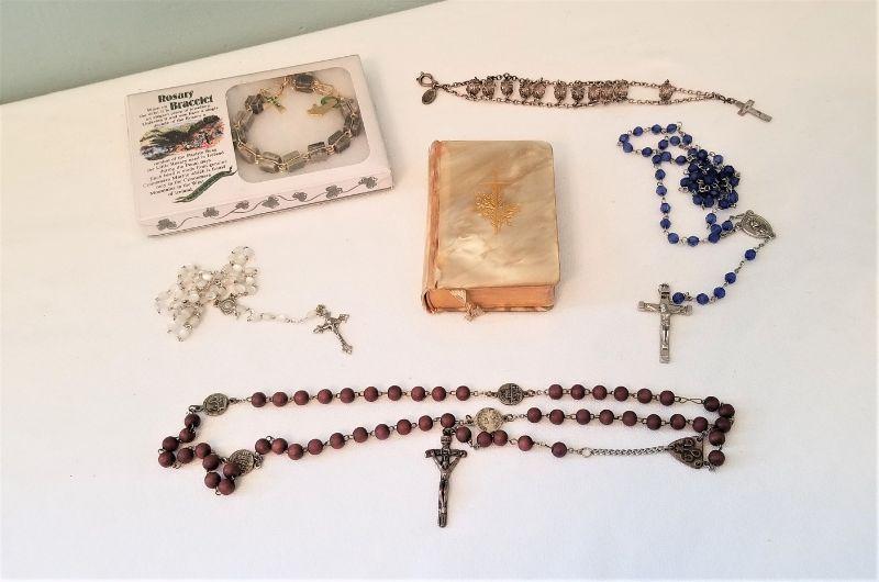 Lot #126 Antique Celluloid Praybook and Selection of Rosaries and prayer bracelets