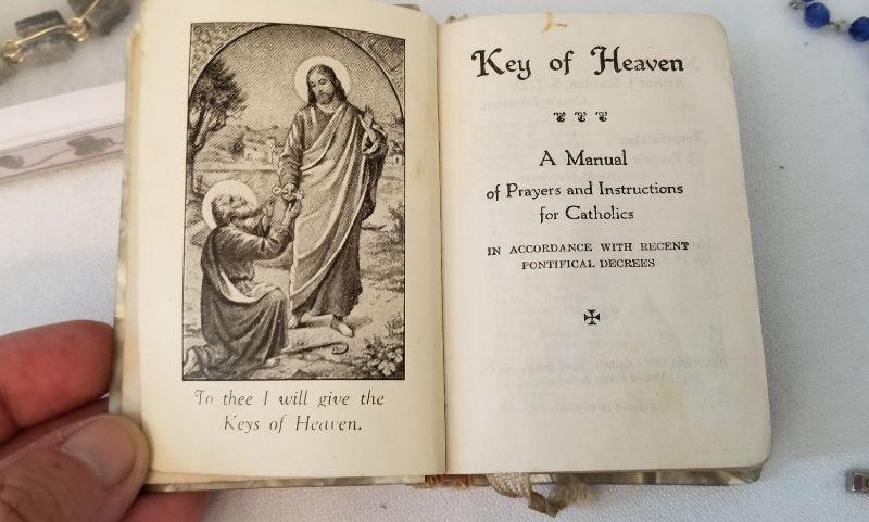 You get all you see here - nice antique (1927) Key of Heaven Prayer book, 3 rosaries, and 2 Rosary bracelets (one boxed).