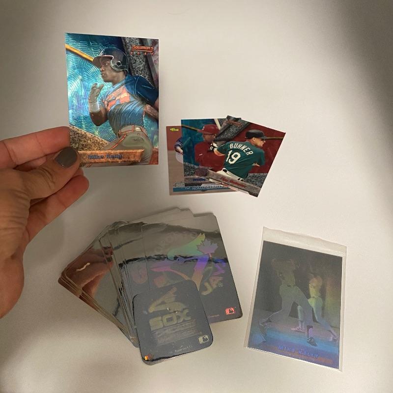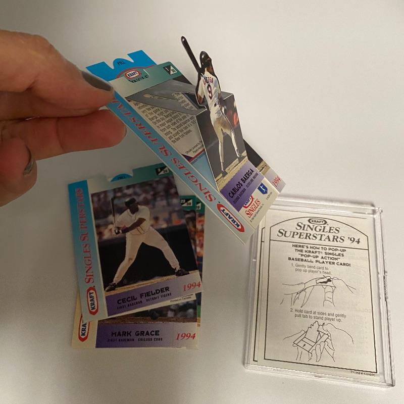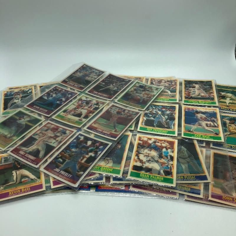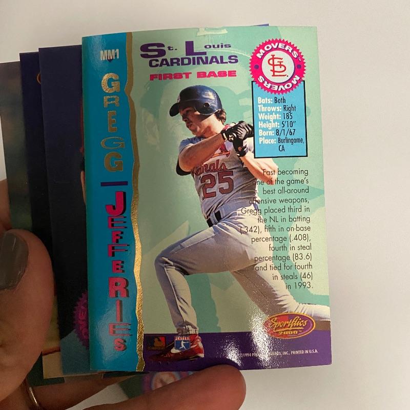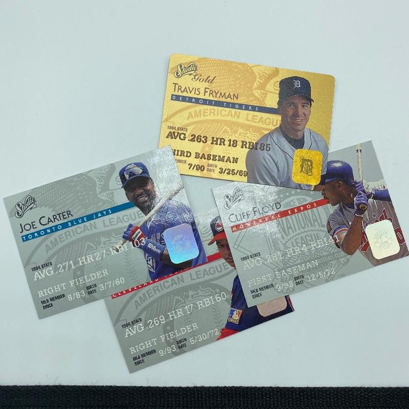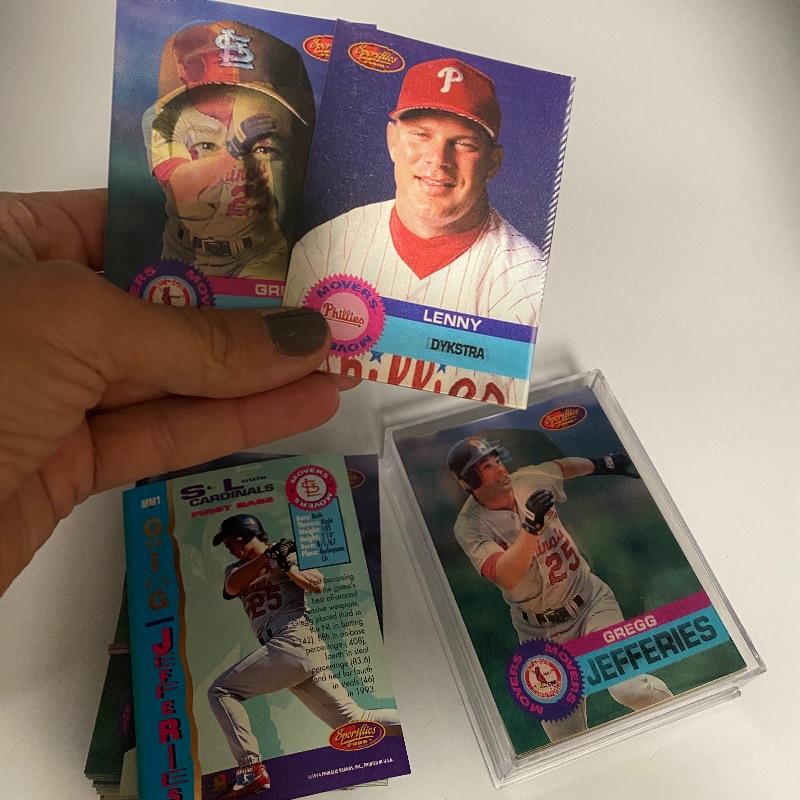 Super sweet sets of baseball puzzle cards, hologram cards, studio cards round medallion pieces, trivia cards and mini stat cards. There is a black case with mini world series and other trivia holograph cards that's fun! There are a lot of cards with lenticular print with athlete in two photos on same card. And don't miss the Diamond Gallery Hologram Set!