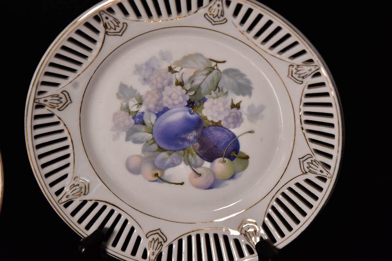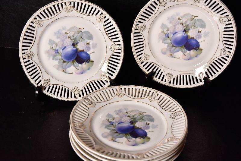 Lot 126: Beautiful Plum Plates with Cutout edges and gold gilding