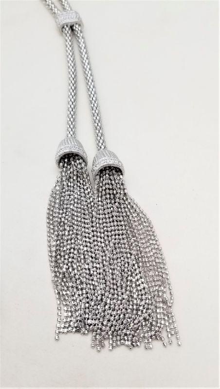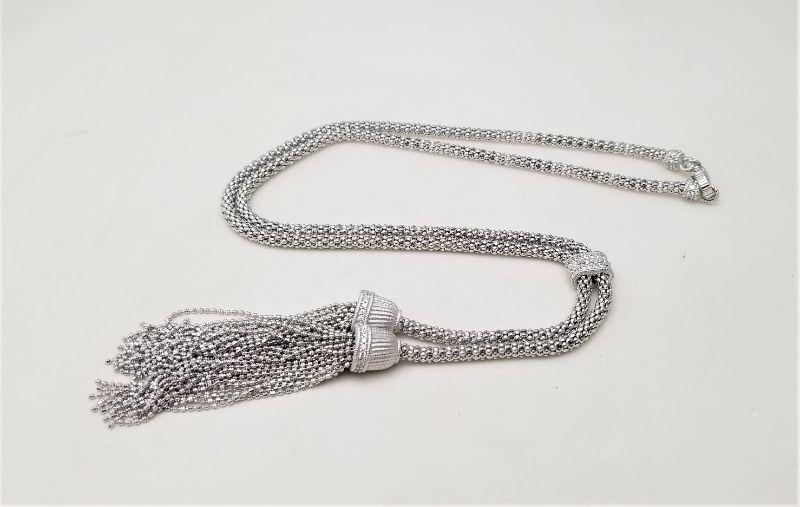 Lot #126  Beautiful Tassel style necklace  - Sterling Silver set with CZs