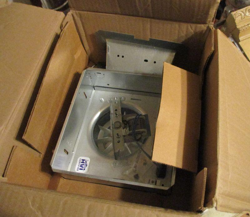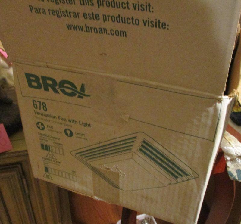 The box says that this is a fan with light and it does appear that the light part is there, but the cover seems to be missing. It is model 678. The duct work pieces are new and they are bringing back memories from my childhood of being with my dad while he was replacing ductwork at a restaurant in Lake Villa, IL.
