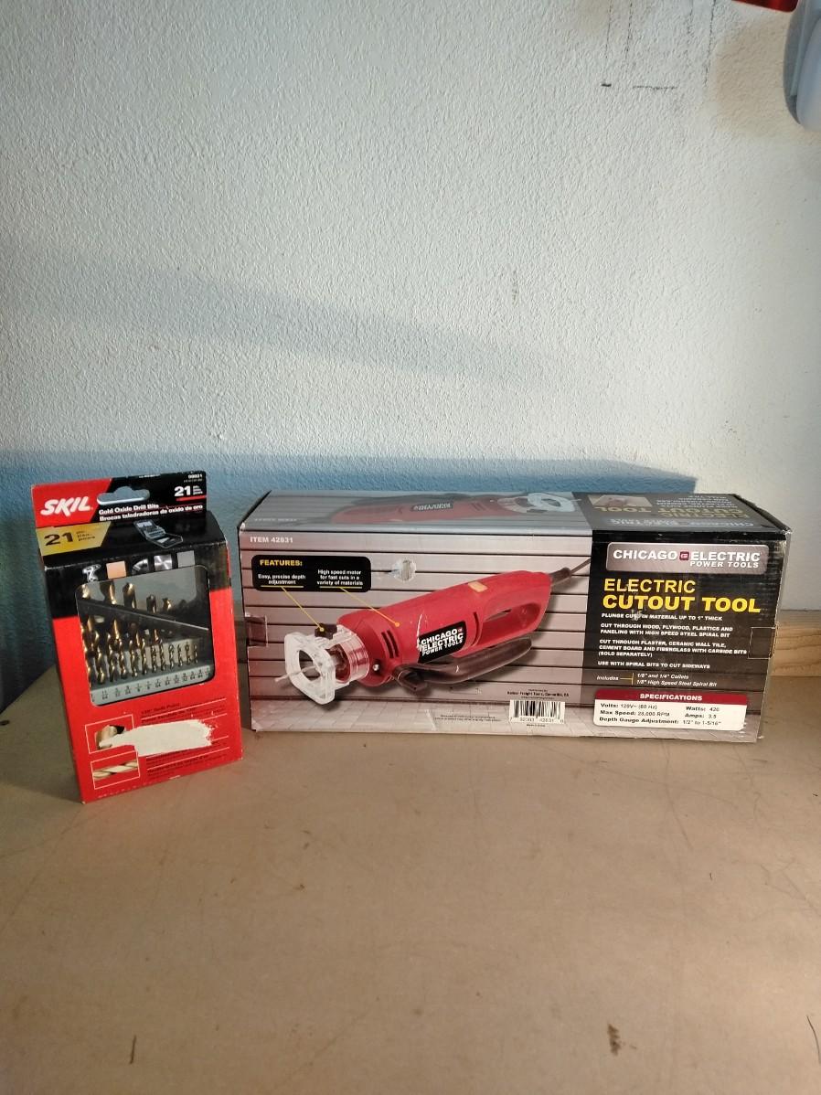 CHICAGO ELECTRIC CUTOUT TOOL WITH DRILL BIT SET