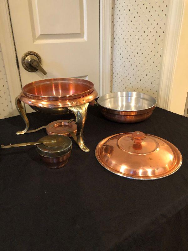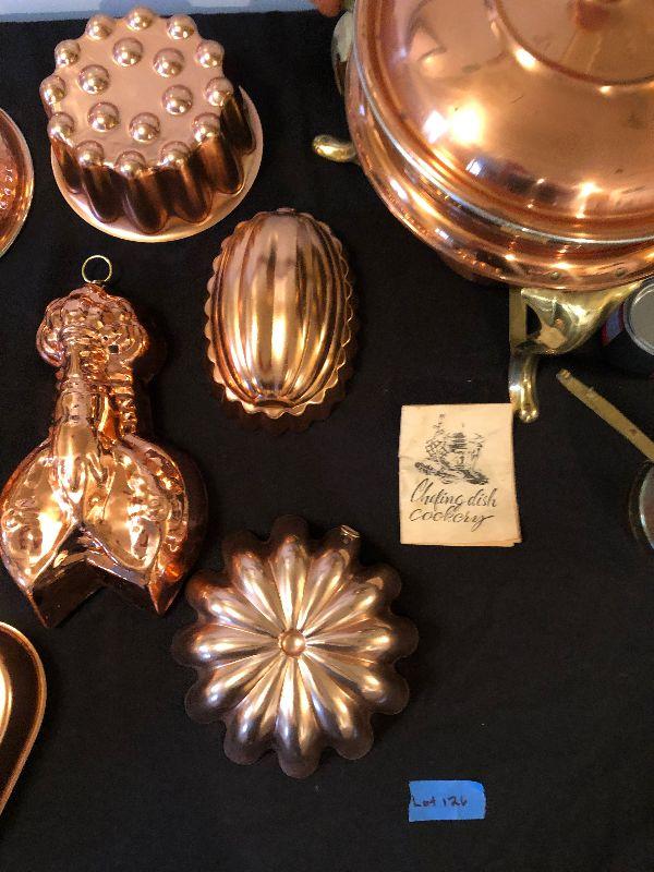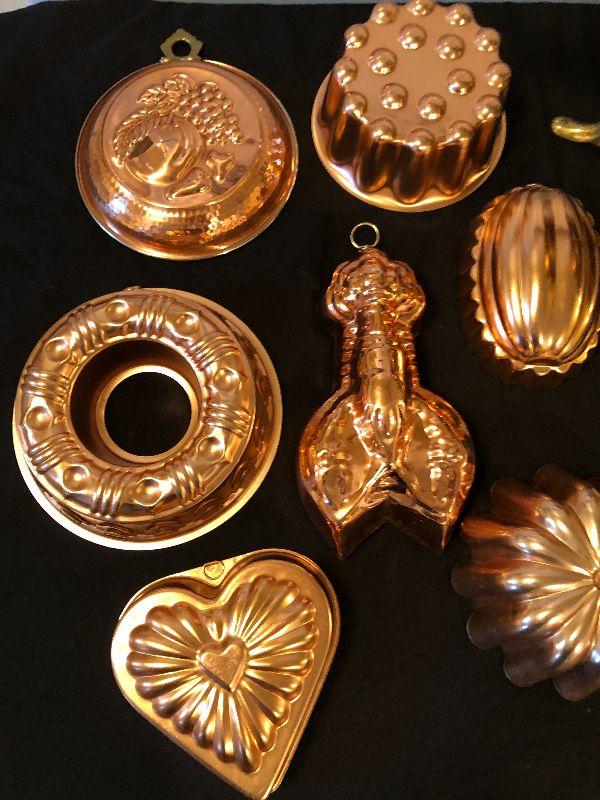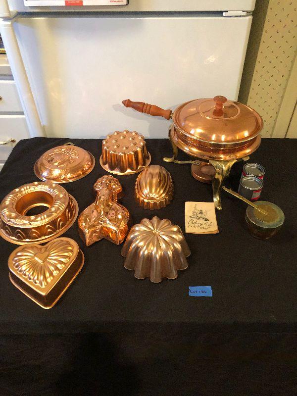 Kitchen Ware Including Several Copper Molds and Chafing Dish set.