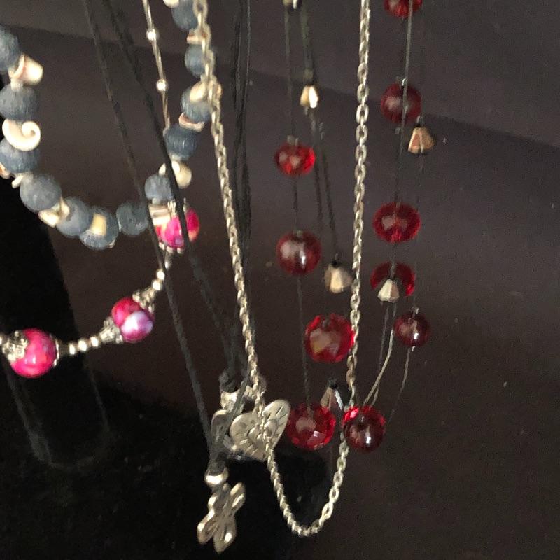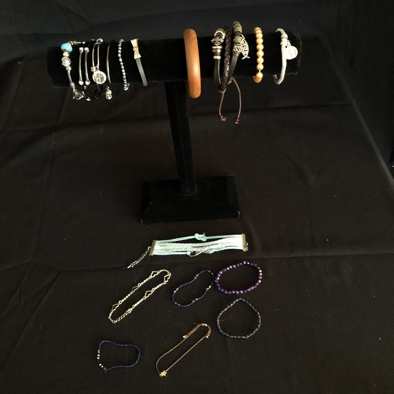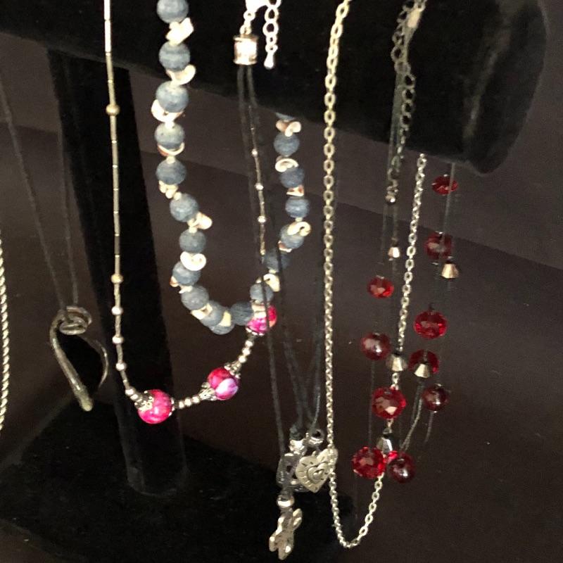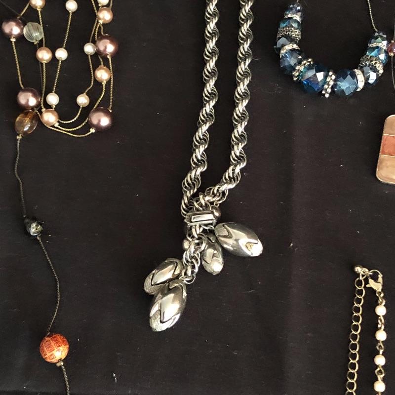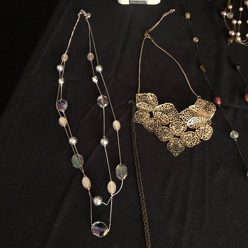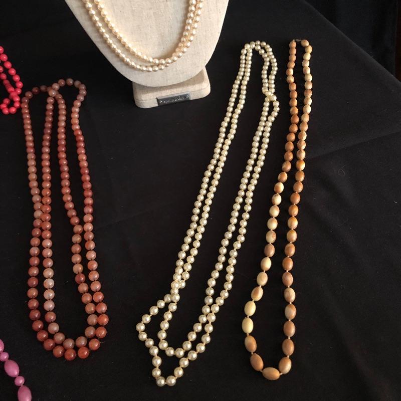 This is a huge lot of jewelry giving you plenty of options to wear. This lot contains eighteen costume jewelry necklaces, twenty three other necklaces, eighteen bracelets and two ankle bracelets. Necklaces vary in length. Shipping Available.