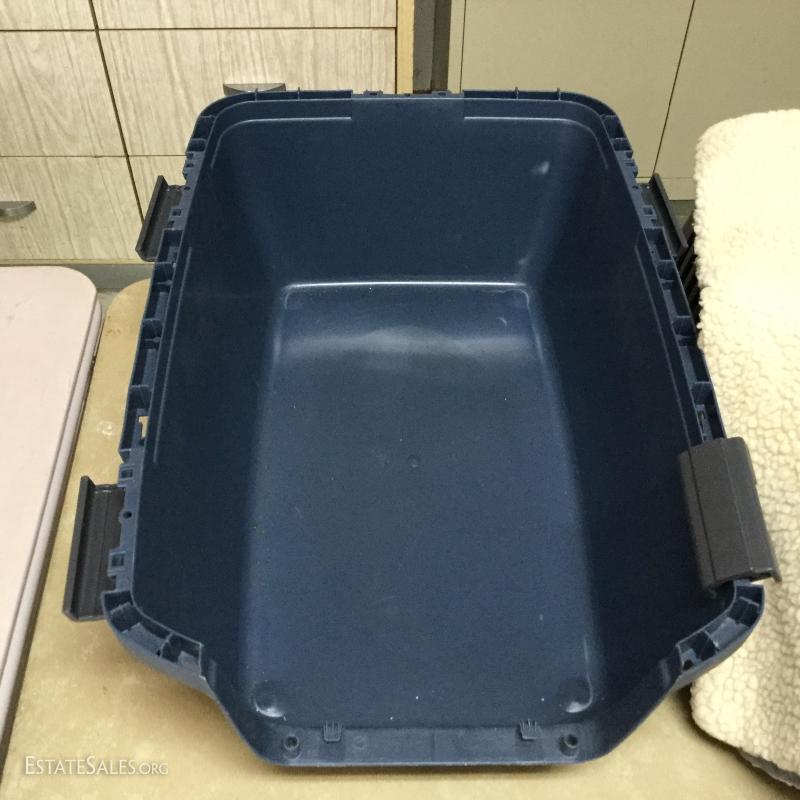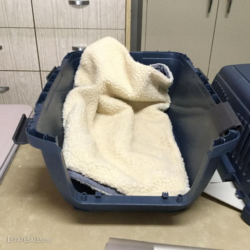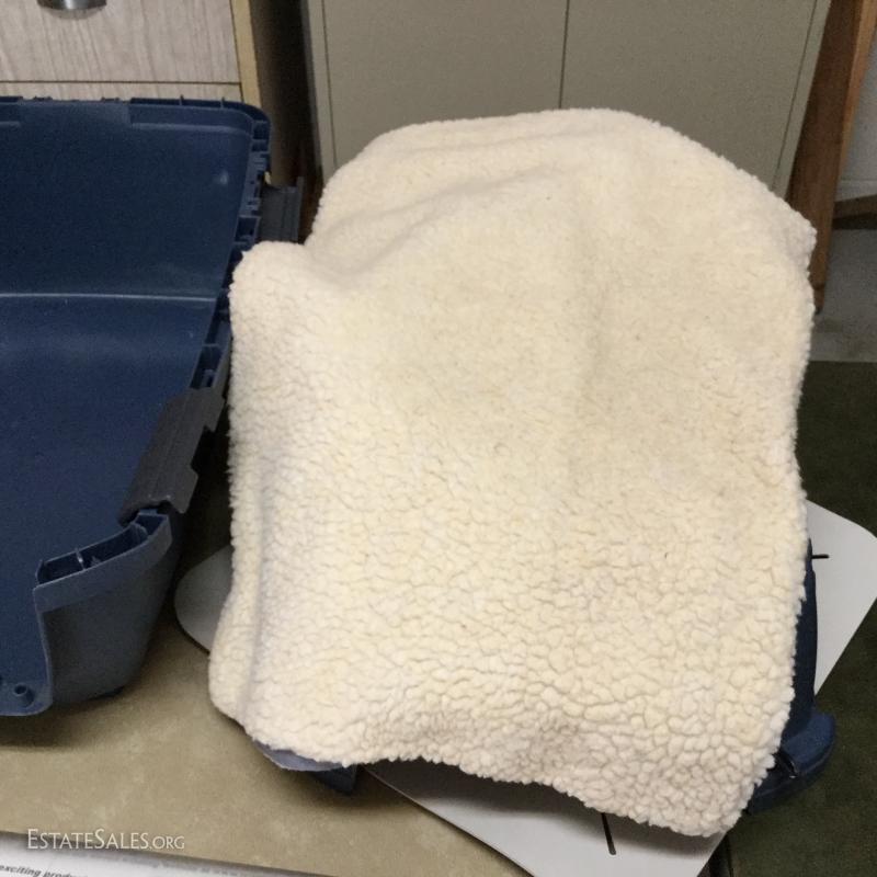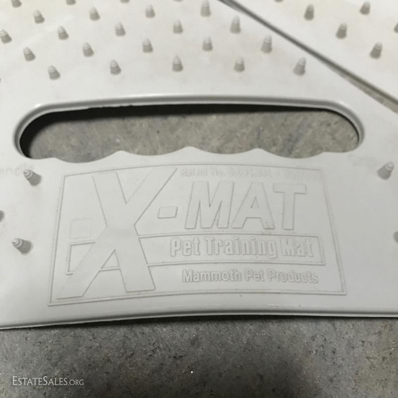 Can be taken apart for easy storage when not using. Includes soft bedding for inside. Lot also includes square pet training mat by X-Mat, 18"square.