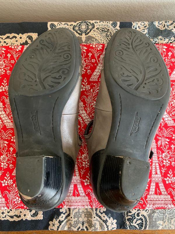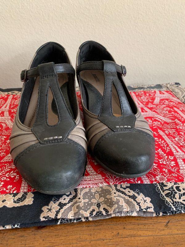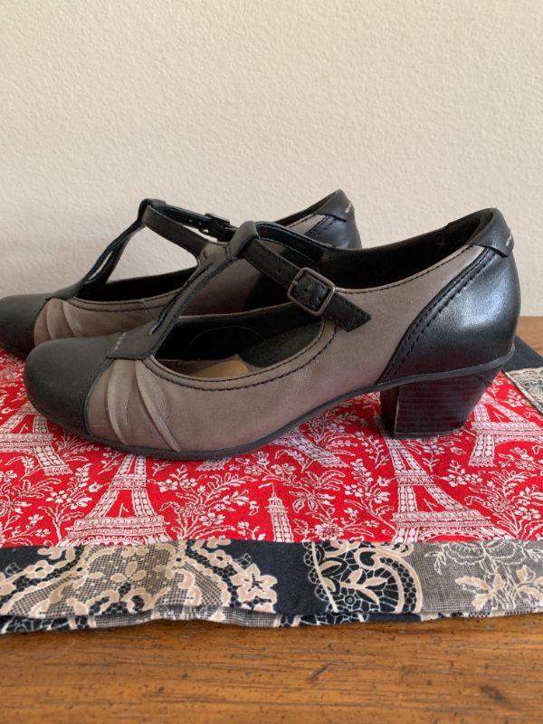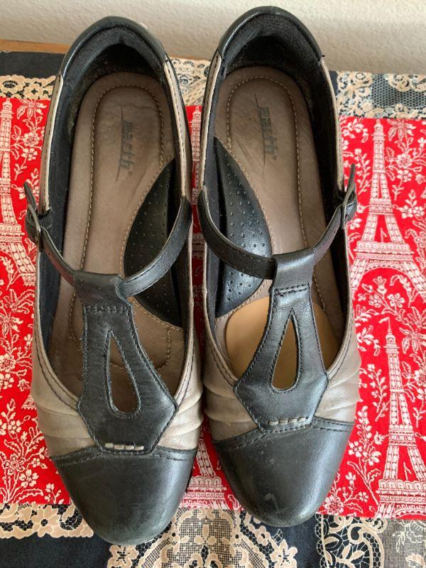 Black & gray spectator pumps, t strap. Size 9.5
