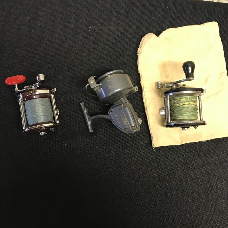 Three fishing reels including a Penn Long Beach with beautiful detail on one end, a Compac Cadillac V, and a Penn JigMaster #500. All in good condition overall. Lot is available for shipping or local pick up in Asheville, NC.