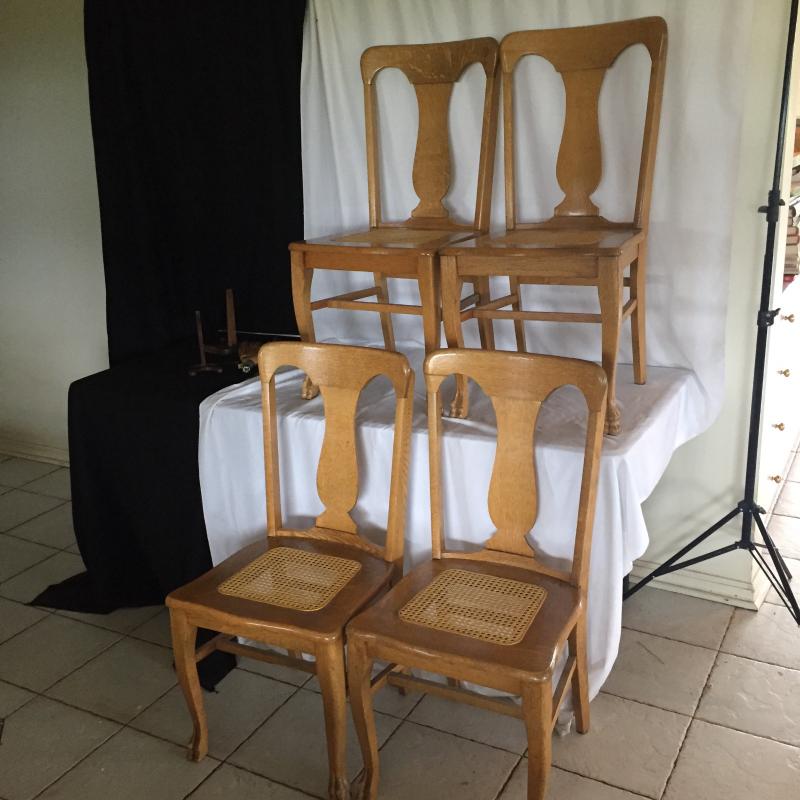 Four Cane Bottom Chairs. Chairs look Great except for front legs. Front legs have gouges-See Pictures