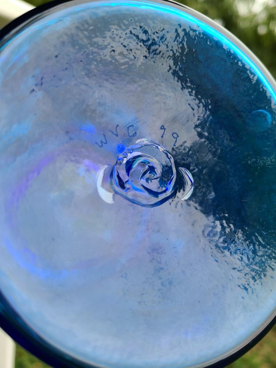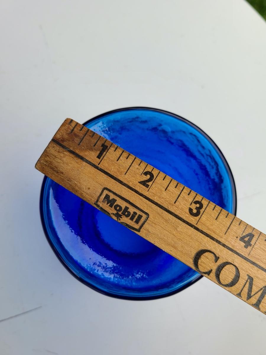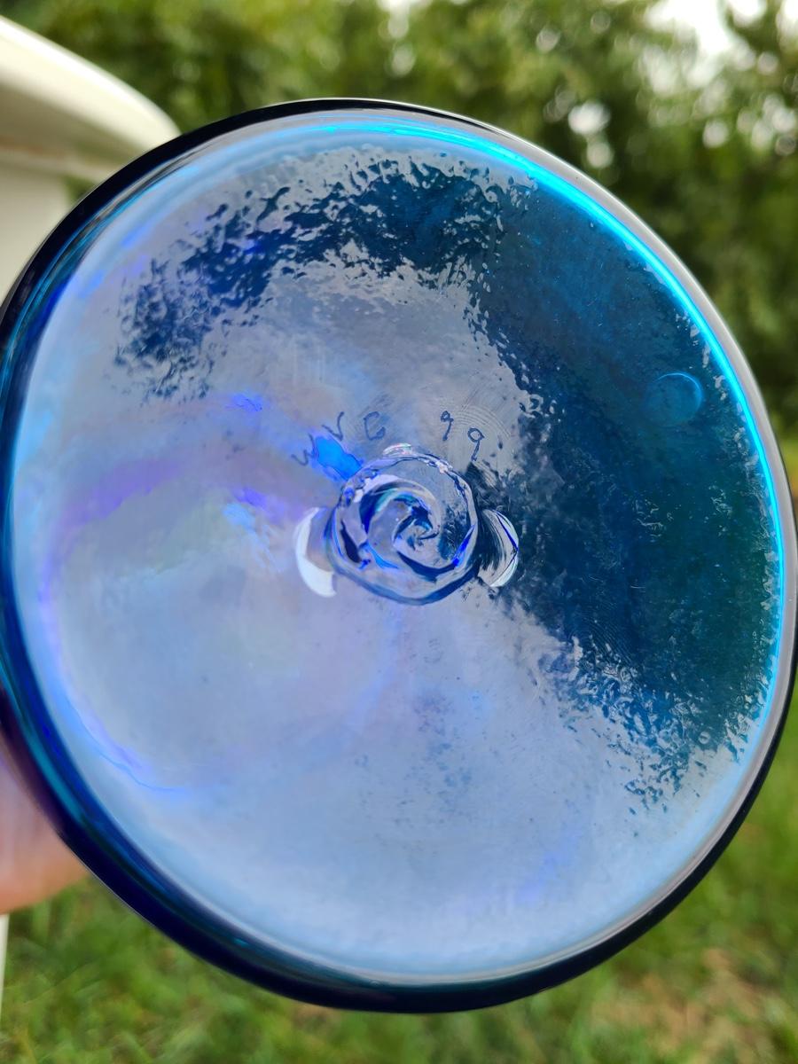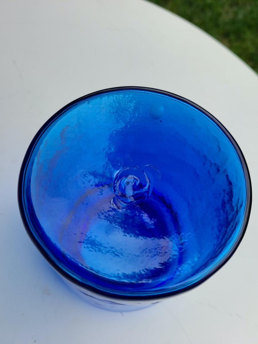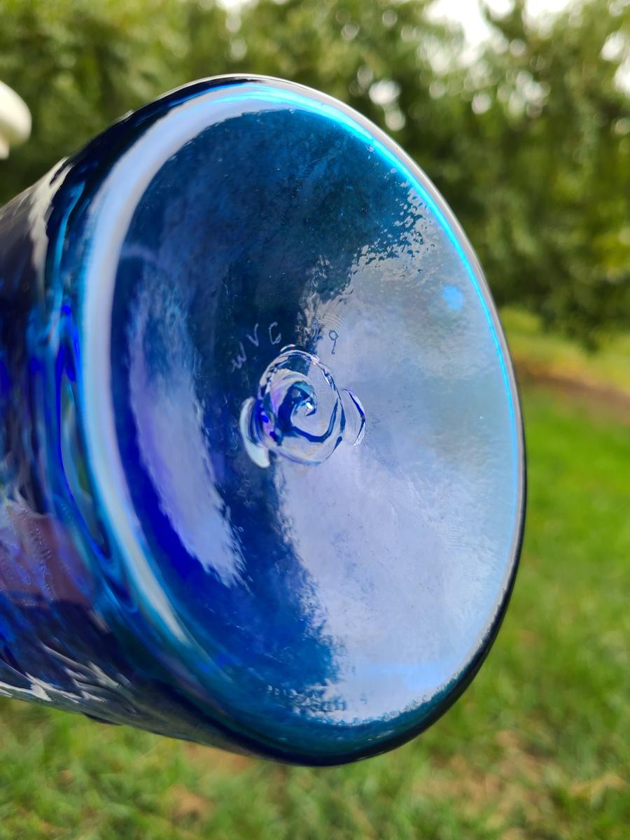 These is a beautiful piece of blue blown glass marked D&S Fruit Glass. Not sure of the age of this piece, research shows that the D& S refers to Diemer & Stubbins who were glass blowers at Wheaton Glass Works, but the bottom has an etching of WVC 99 that might mean this is a reproduction done in 99 buy a Wheaton Village Glassblower. Gorgeous condition with beautiful lines and color! Piece of art! The pictures show condition, measurements if taken, and what is included in the lot. Due to the large amount that we photograph and the time frame, we are not always able to take measurements. All items unless noted, are pre-owned and have been used. If you purchased furniture, you must bring help. We do not allow one person to carry large furniture out on their own. Bring help, tools and a truck for the safety of our client’s homes, and your personal safety. Company policy. Thank you.
