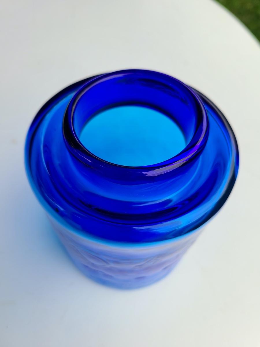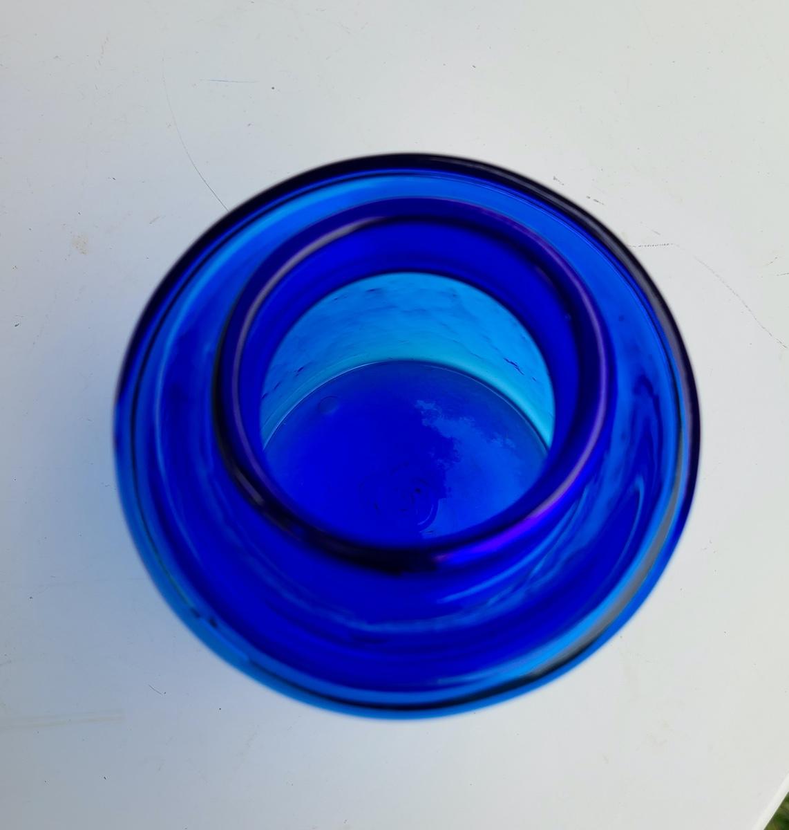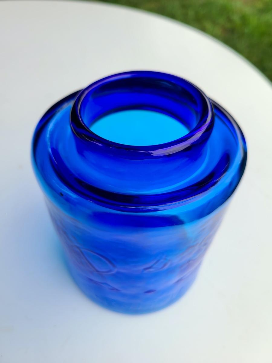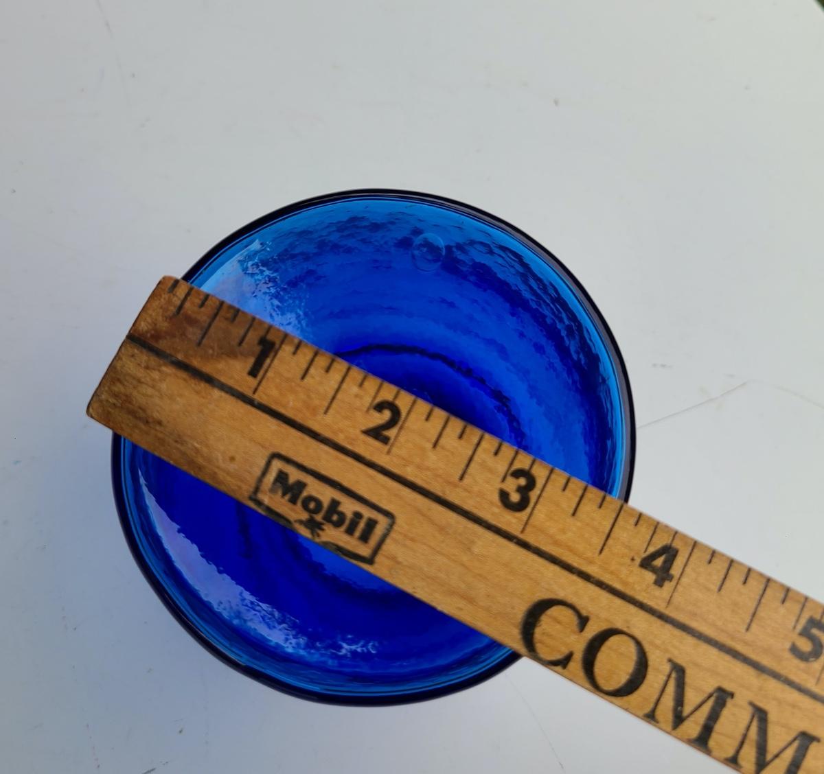 These is a beautiful piece of blue blown glass marked D&S Fruit Glass. Not sure of the age of this piece, research shows that the D& S refers to Diemer & Stubbins who were glass blowers at Wheaton Glass Works, but the bottom has an etching of WVC 99 that might mean this is a reproduction done in 99 buy a Wheaton Village Glassblower. Gorgeous condition with beautiful lines and color! Piece of art! The pictures show condition, measurements if taken, and what is included in the lot. Due to the large amount that we photograph and the time frame, we are not always able to take measurements. All items unless noted, are pre-owned and have been used. If you purchased furniture, you must bring help. We do not allow one person to carry large furniture out on their own. Bring help, tools and a truck for the safety of our client’s homes, and your personal safety. Company policy. Thank you.