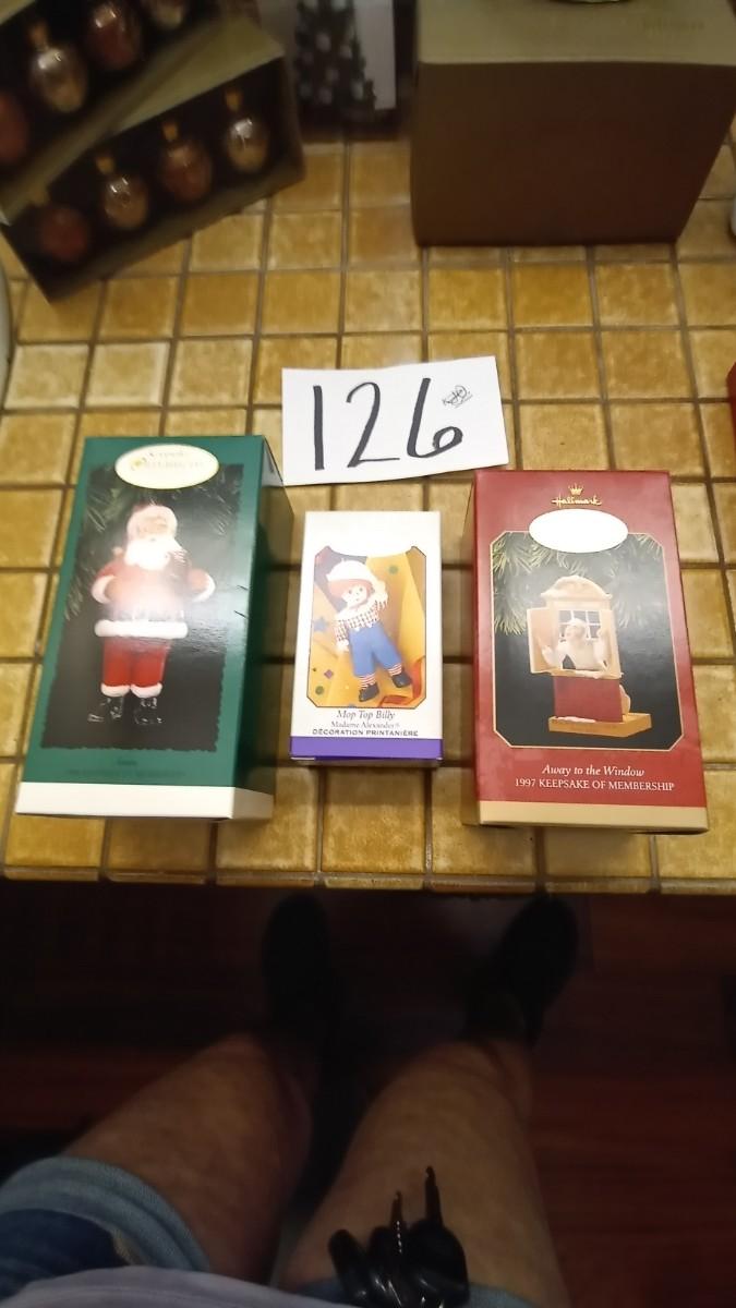 LOT 126 HALLMARK KEEPSAKE ORNAMENTS SANTA-MOP TOP BILLY-AWAY TO THE WINDOW