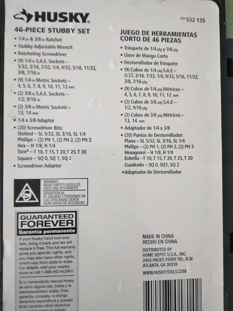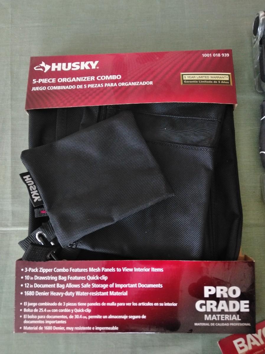 NEW 5 PIECE HUSKY ZIPPERED POUCHES, 46 PIECE STUBBY SET, AND A WORKLIGHT