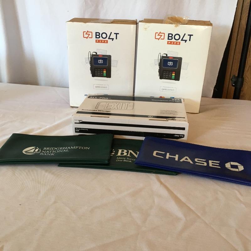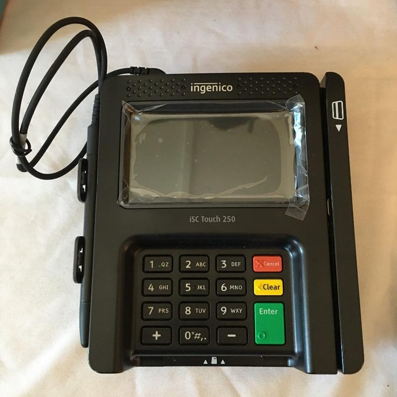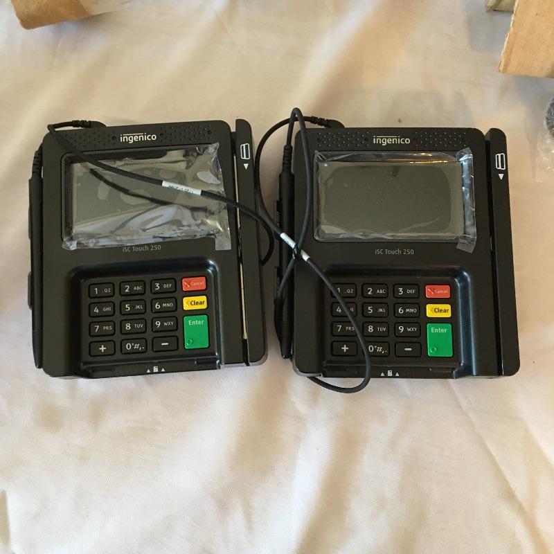A great deal for your store is this pair of Ingenico ISC Touch 250 terminals that are NIB. Also includes thermoplastic exit sign and three bank bags.