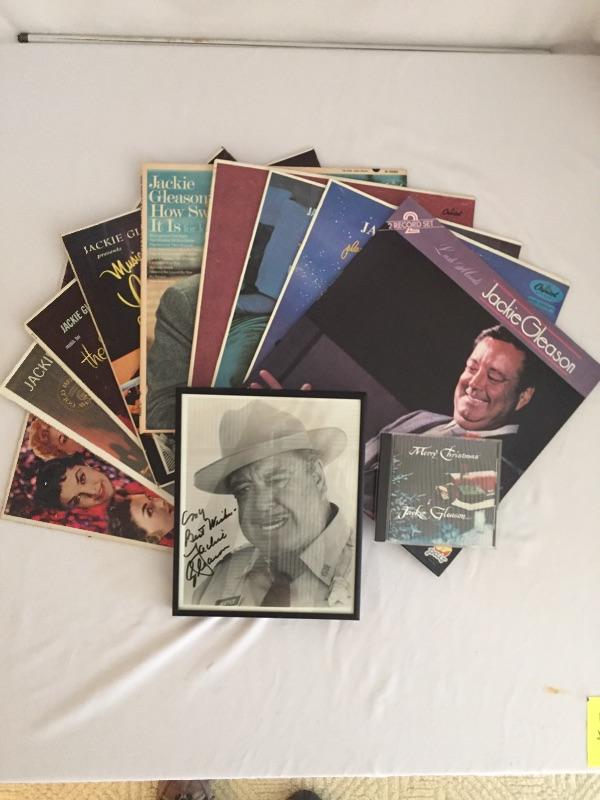 This Jackie Gleason collector’s set includes a signed and framed photo of the actor as a Sheriff Justice(no COA), 9 albums from the great artist and his Merry Christmas CD
