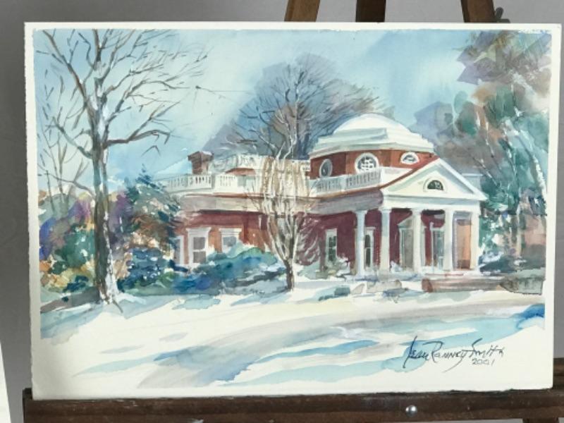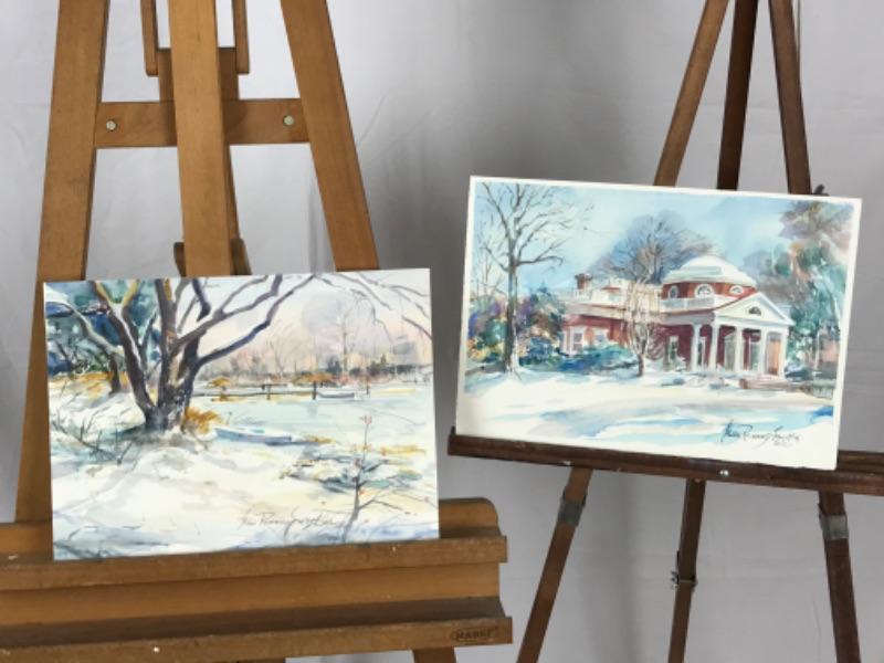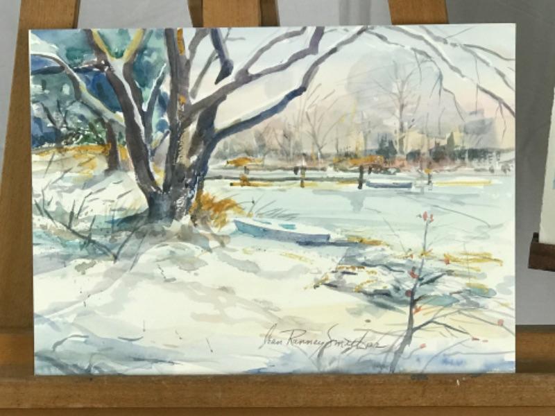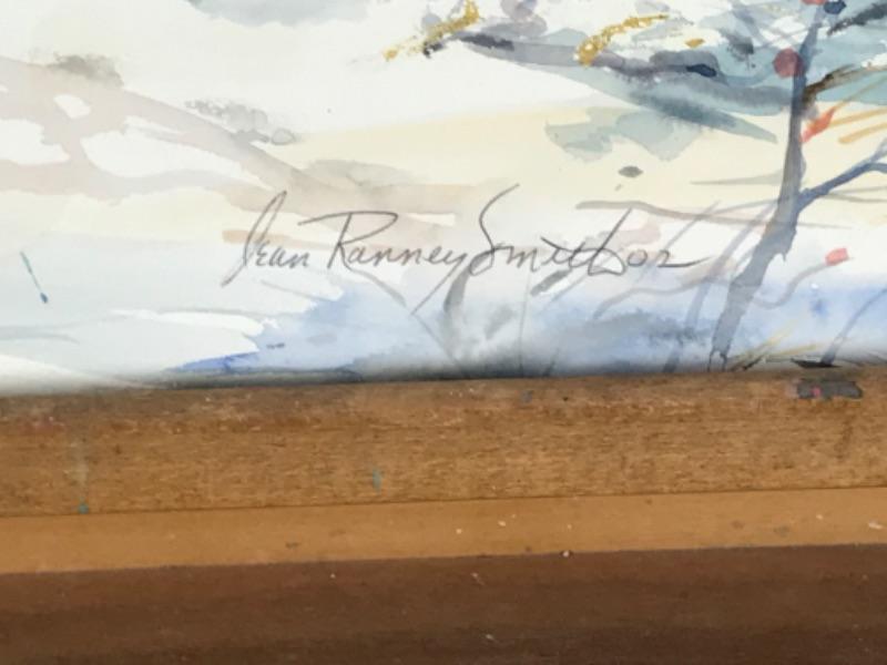 Pair of Jean Ranney Smith signed original watercolors “Winter on the Water” measures 15”x11”, “Manor House” measures 15”x10-1/2”