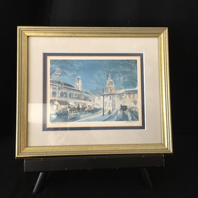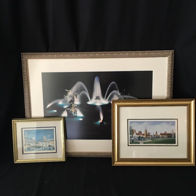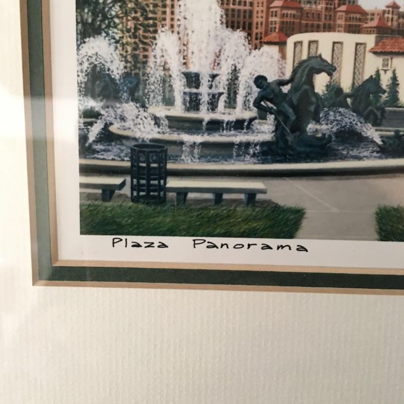 This trio of artwork featuring the plaza in Kansa City includes two framed, matted and signed pieces titled “ Plaza Panorama” and “Plaza Carriages” and one pint that is matted and framed and is auto signed. Largest frame measures 23” x 31.5”.
