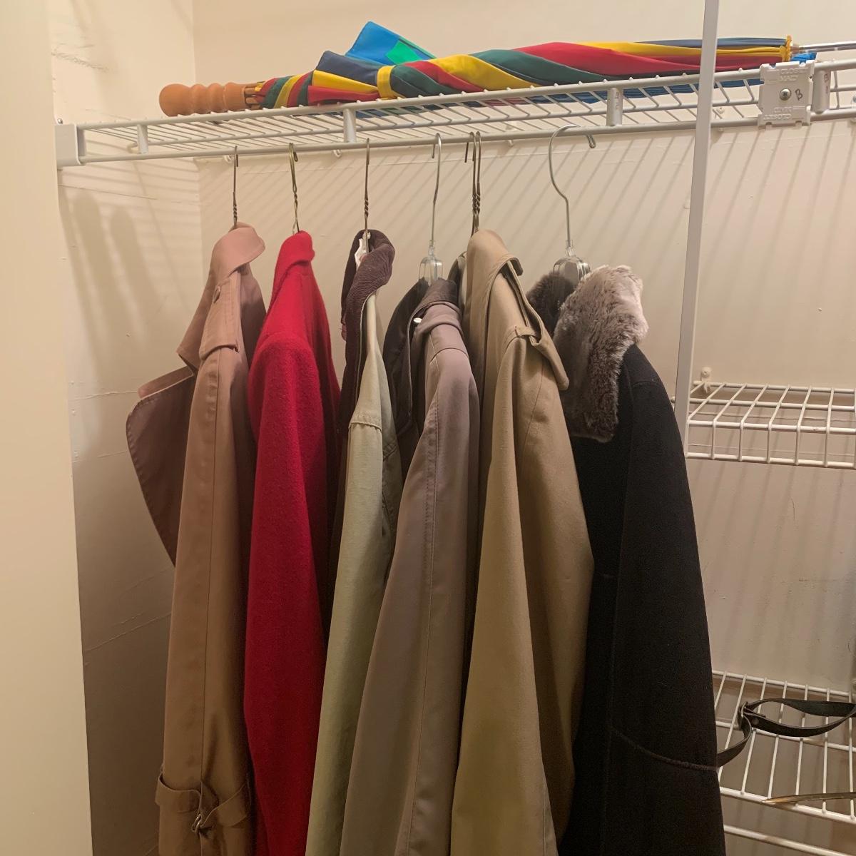 This lot includes 6 women’s coats, 2 umbrellas, and one bucket hat. The coats are about all size smalls / petite. Included in the coats is a London Fog Maincoat, two Gallery Petite coats, a Land’s End corduroy collar coat, a red wool coat, and an unbranded trench coat. The unbranded trench coat has a broken zipper on the inside (see photos). The Lands End coat has a small hole on the sleeve (see photos). Two of the coats have shoulder pads. All of the coats appear to be in a gently used condition. The two umbrellas have been opened and appear to be in good condition. The hat is by the brand Obagi and can be used as a rain hat. Shipping available.