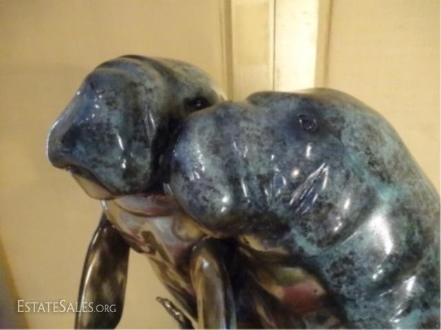 LOT 126: LARGE PATINATED BRONZE SCULPTURE 2 MANATEES ON MARBLE BASE, SIGNED JAY WILLIAMS, NEW IN SHOWROOM CONDITION, 21"H X 14"W X 9.5"D, SKU006.09 H599