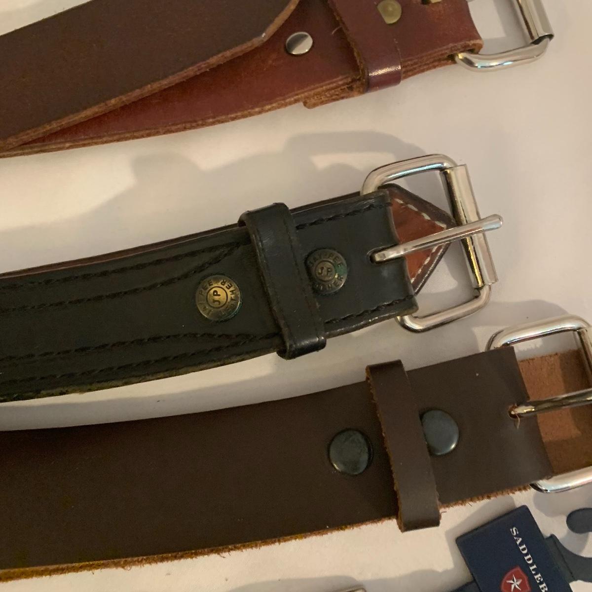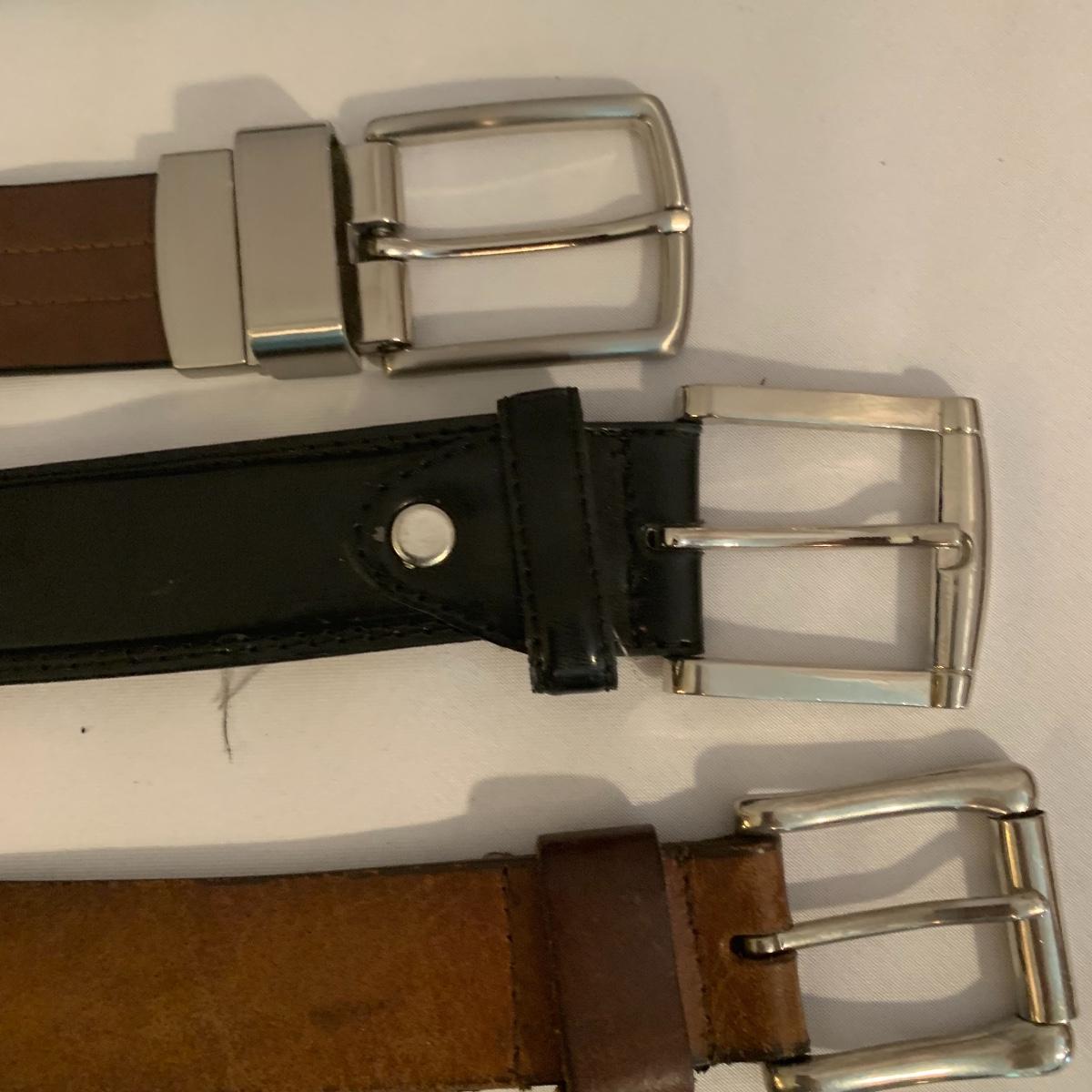 Gentlemen, here’s a chance to add class to your wardrobe. Offered are several ties featuring brands Comfort Zone, George Forman, and Alexander Loyd. There are eleven ties in all, and a tie rack is also included. This lot also includes a group of belts. Most of them are leather and a few are canvas. All belts are size large. There are 27 belts total. Local pickup only.