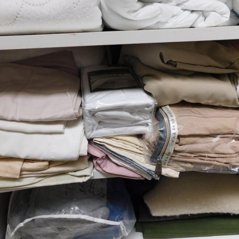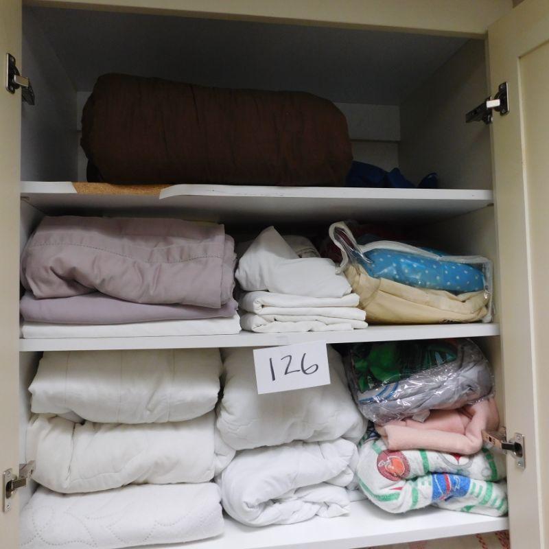 Lot 126. Linen closet full of blankets, sheets, pillow cases misc. linens
