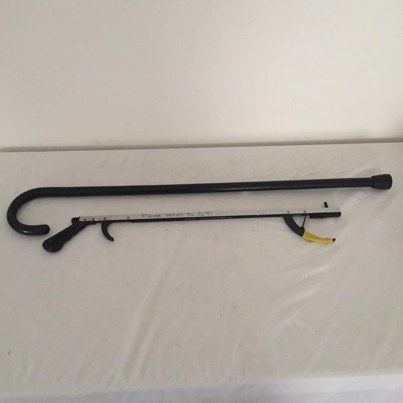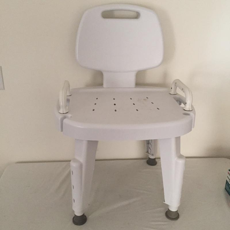 Adjustable shower chair , Cane , pick up stick , Massage cushion and a pair of blood pressure monitors.