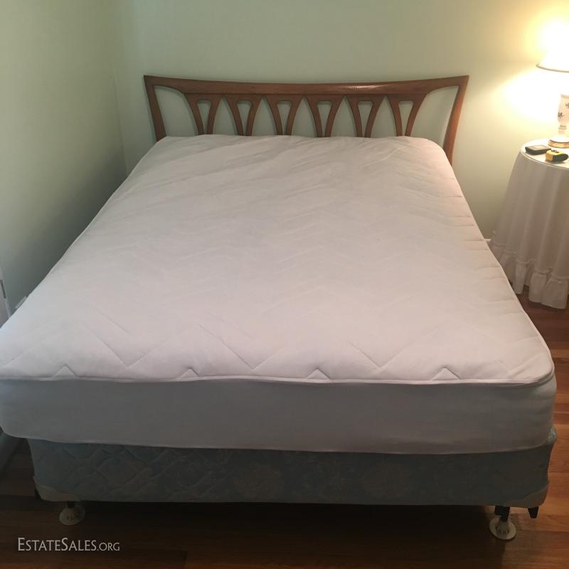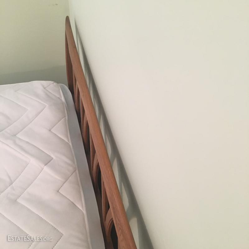 This sleek headboard is solid wood and has nice lines. Attaches to a metal bed frame and is double size bed. Mattress and springs available for free if winner wants them. Headboard measures 60" x 36". Lot is available for local pick up in Asheville, NC only.