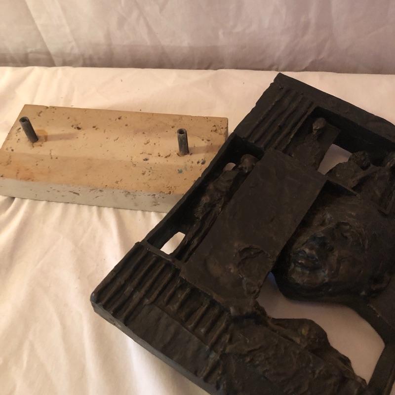 Enjoy this modern piece of art by Ziamonon. This art piece is entitled, “ Compuesto De Bronce.” It appears to be made of resin. Shipping Available.