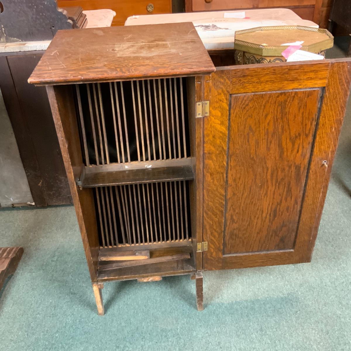 Oak Phonograph Cabinet Base. Please see photos for details and condition. //::\\ Please see photos for details and condition. No attempt has been made to hide any imperfections. All items listed in this auction are warehouse items, and need to be cleaned. A majority of the items need restoration as well. All items are sold AS IS and WITHOUT GUARANTEE. If you are uncertain about an item, DO NOT BID. Due to the nature of this online auction in-person inspection is HIGHLY recommended. All Sales are FINAL. Pick Up Times are FIRM. Please confirm with your own schedule that you can pick up in the scheduled times listed in the Terms and Conditions. Any questions please message the auctioneer. DO NOT Contact The Harp Gallery.