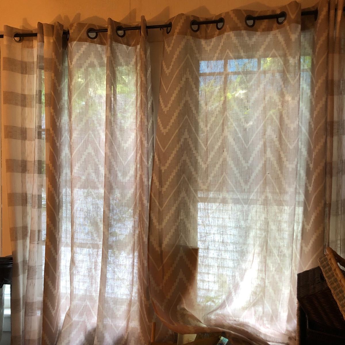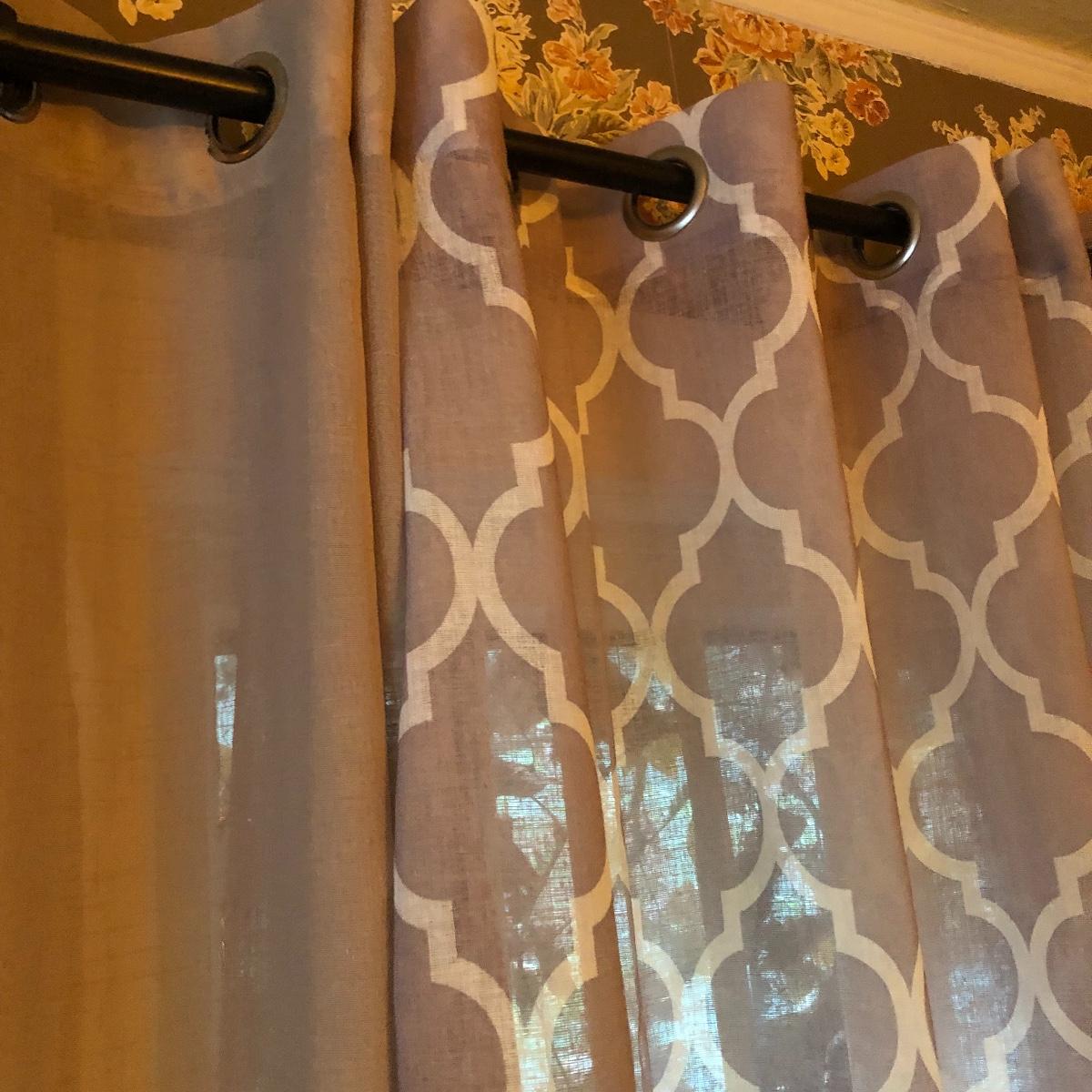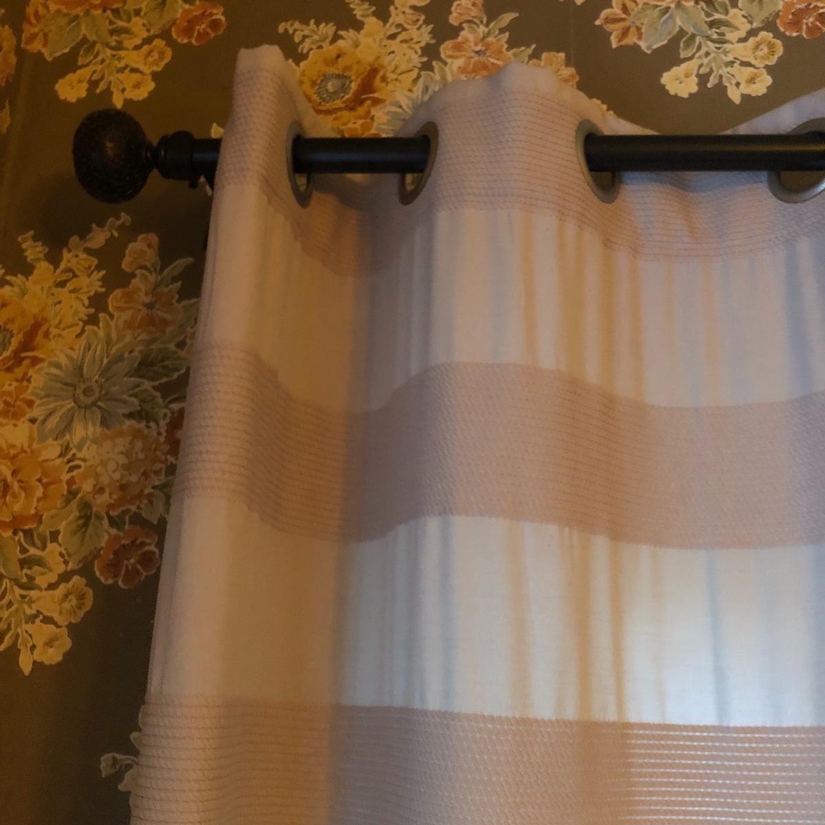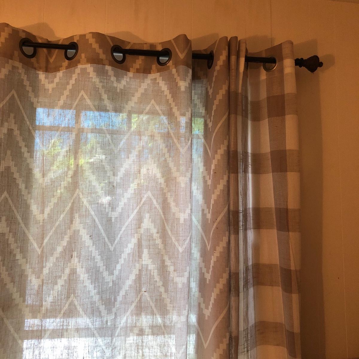 Plenty of window grommet panels in this lot with 10 plus of them and 3 dark brown colored metal curtain rods. A couple of them haven’t been used and are still in their packaging. The panels with metal grommets are in a variety of muted shades of cream, tan and brown that mix and match one another nicely. Curtains measure 54” wide x 84” long with a few that are not as wide at 38” and yet more (main image) that includes two 48” x 96”, two 36” x 108”, one 48” x 84”