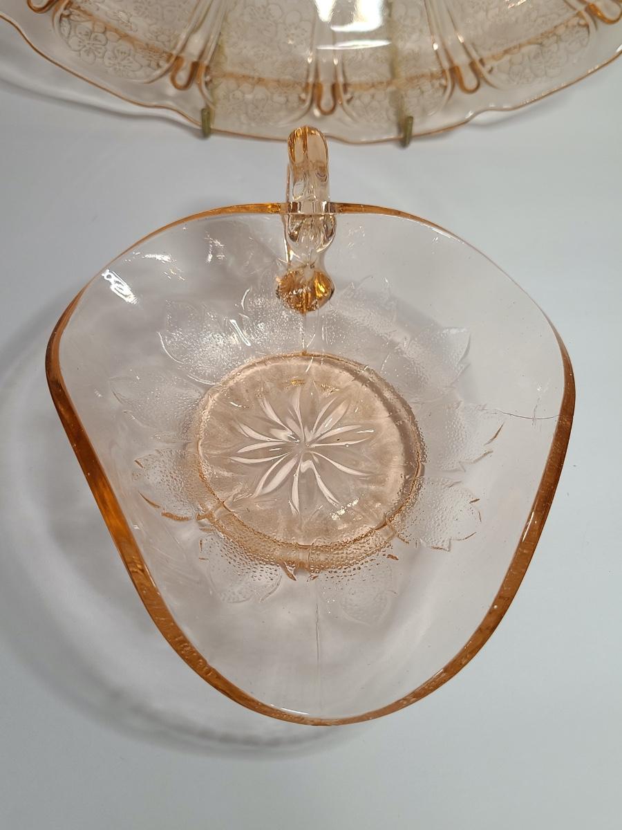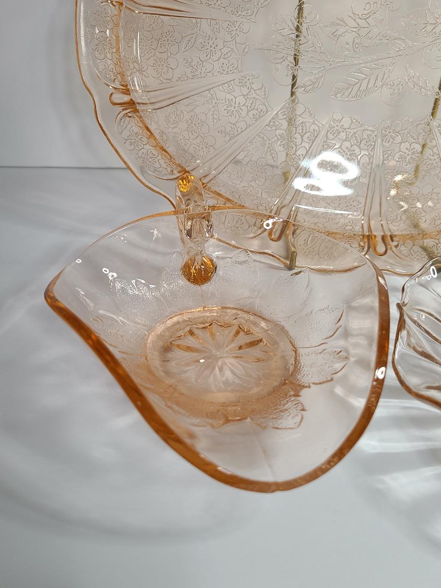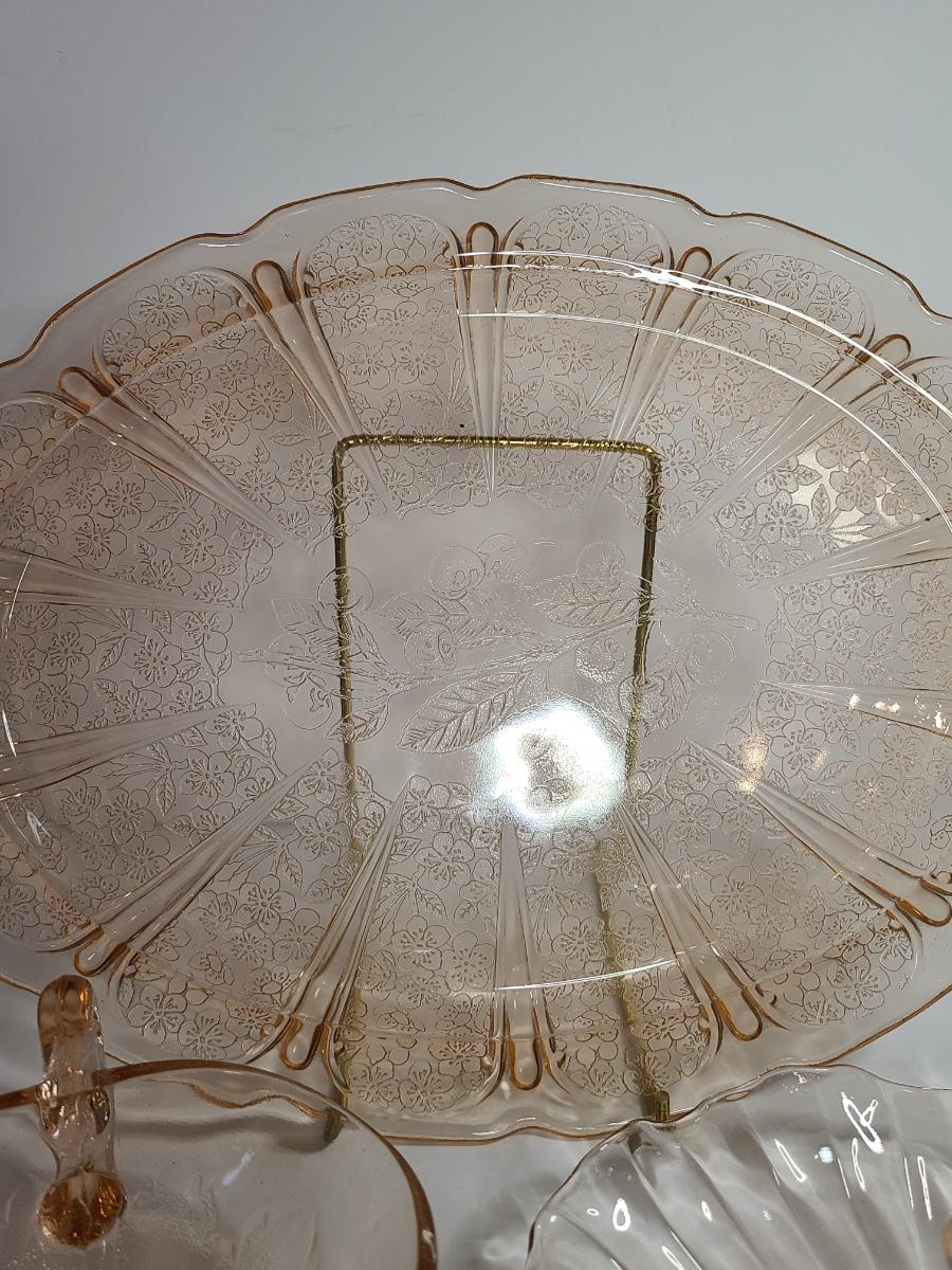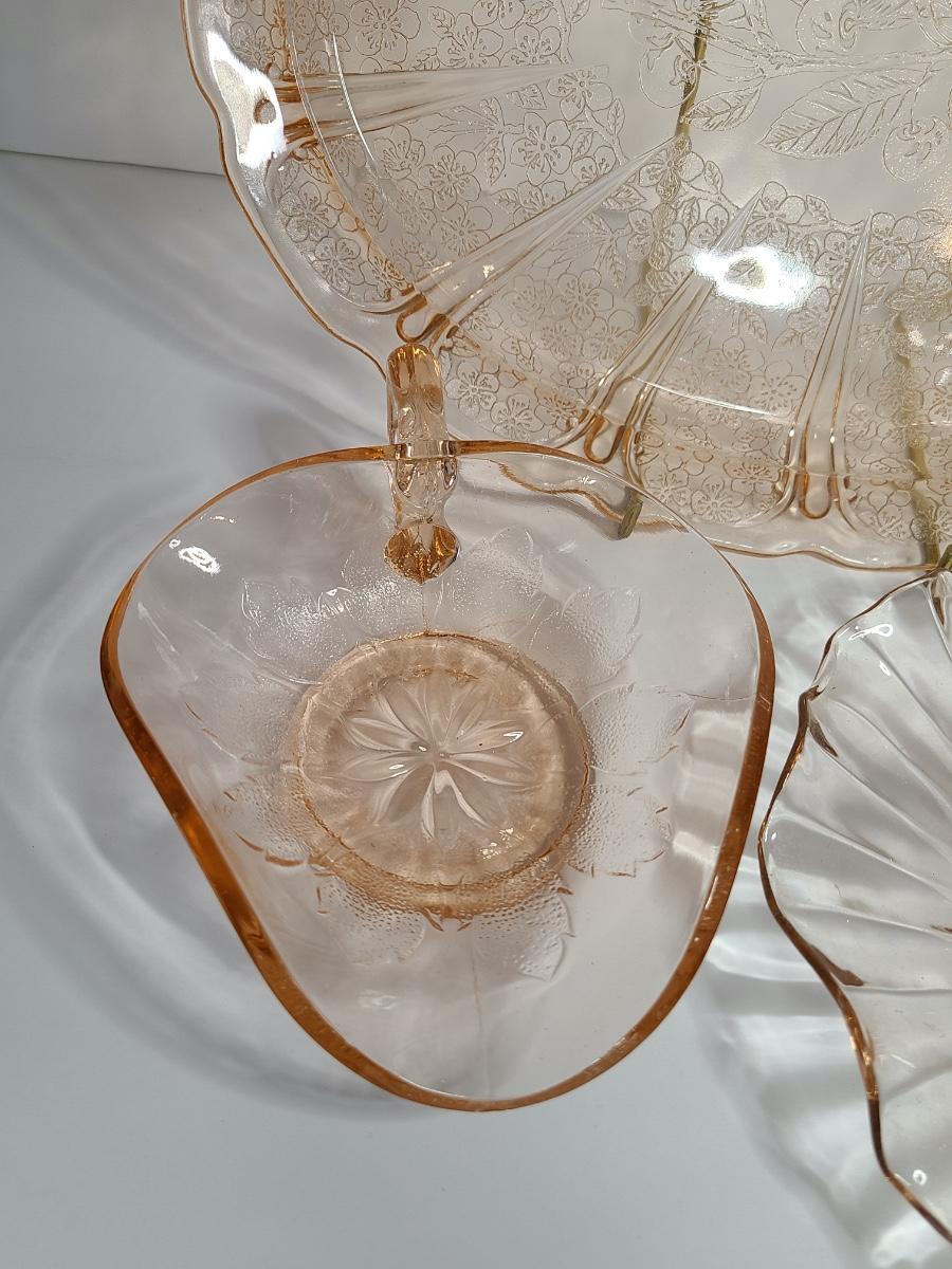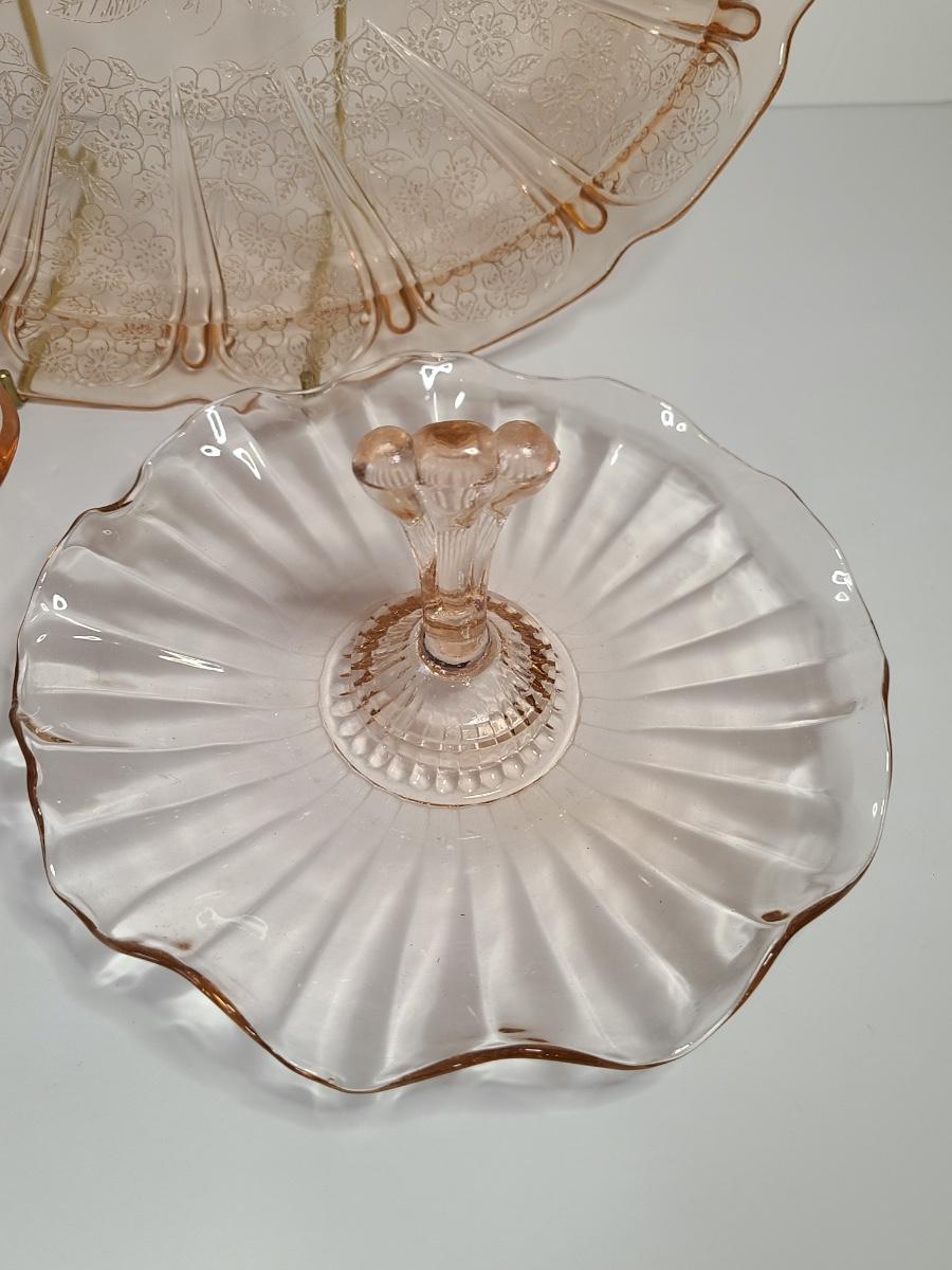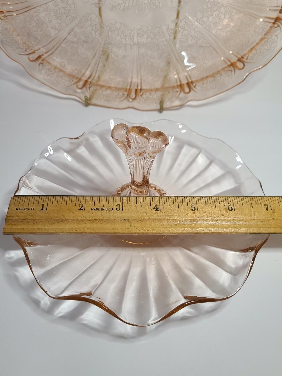 Lot 126: Pink Depression Glass Platter & Candy Dishes