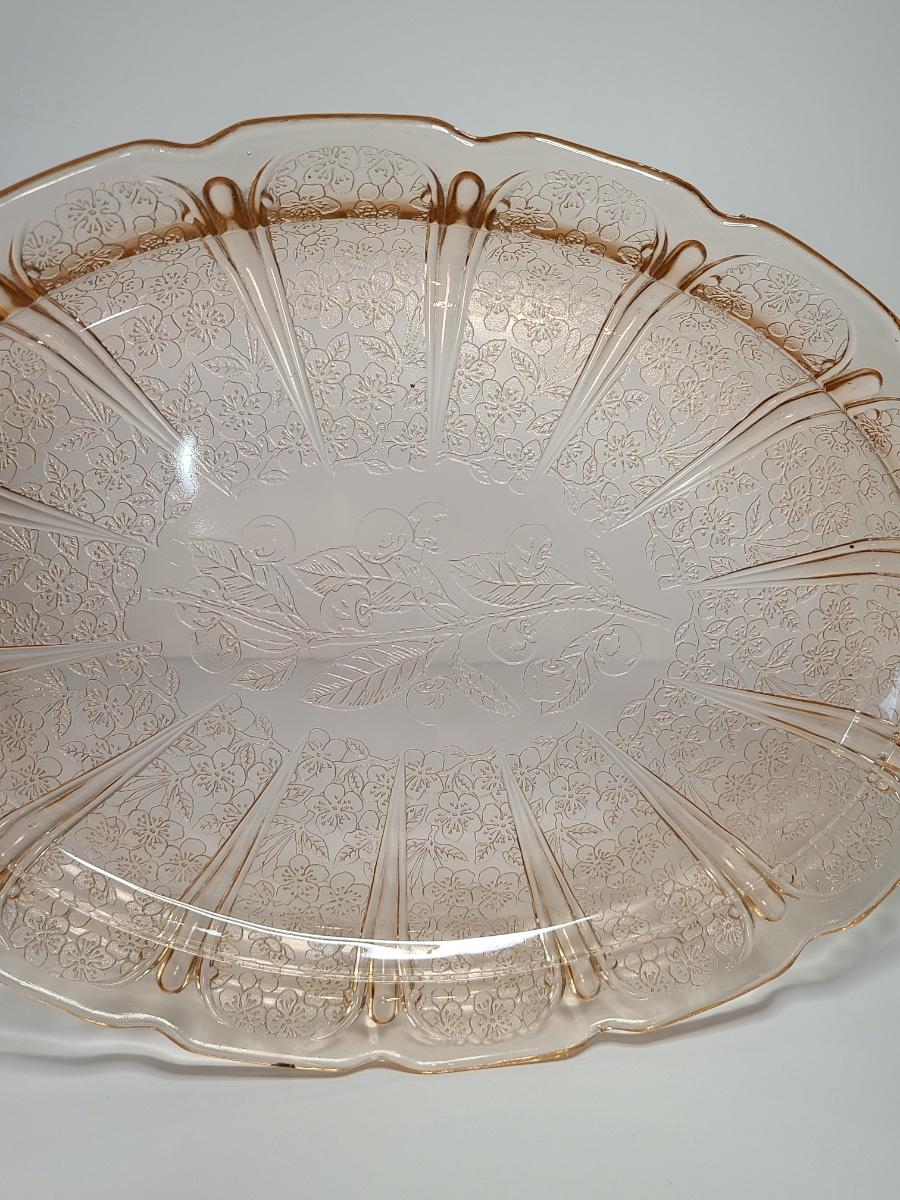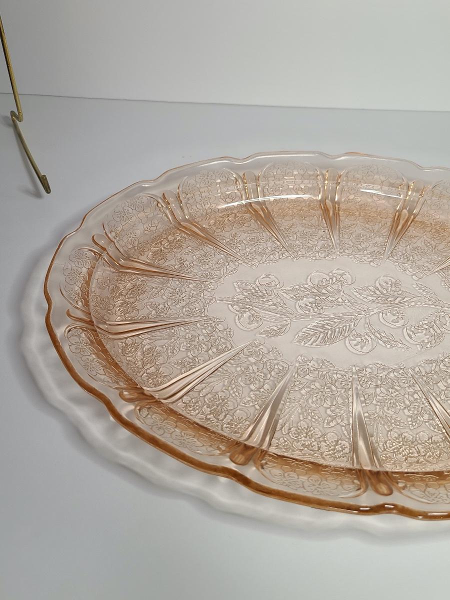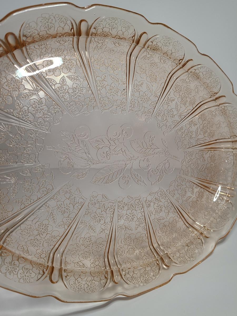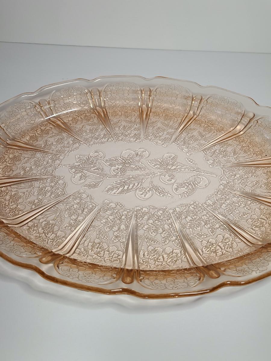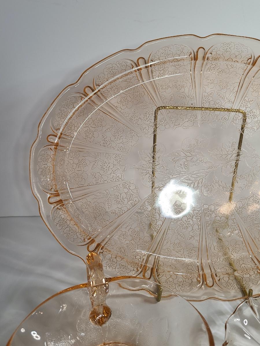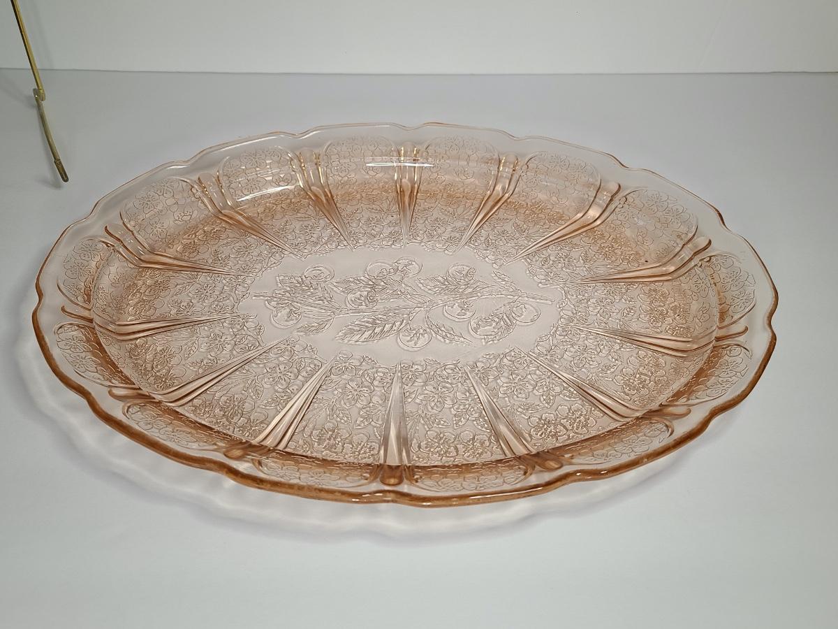 Lot 126: Pink Depression Glass Platter & Candy Dishes