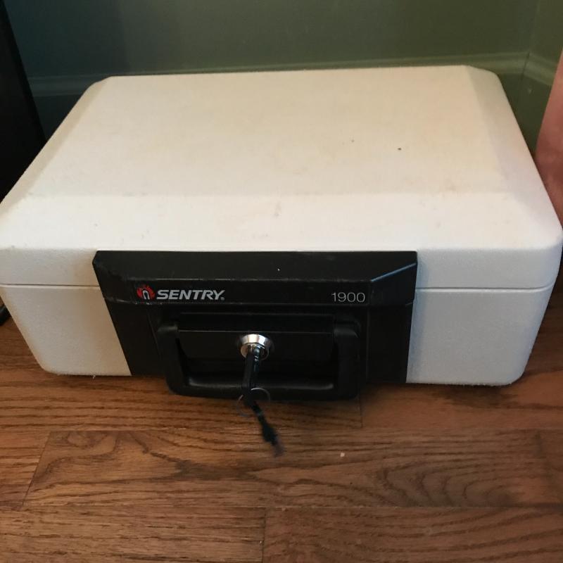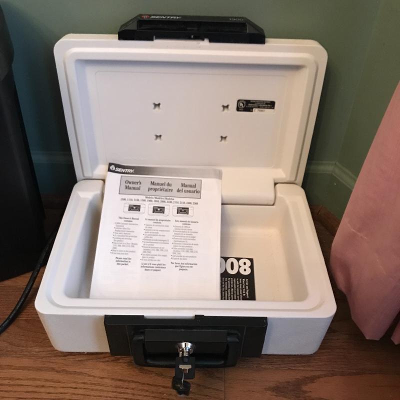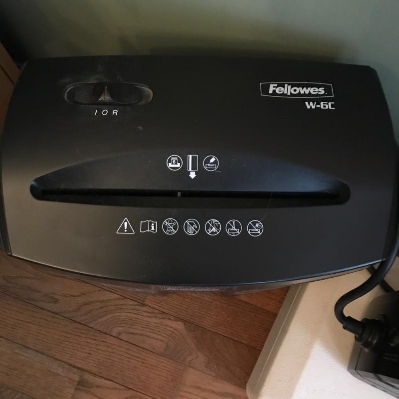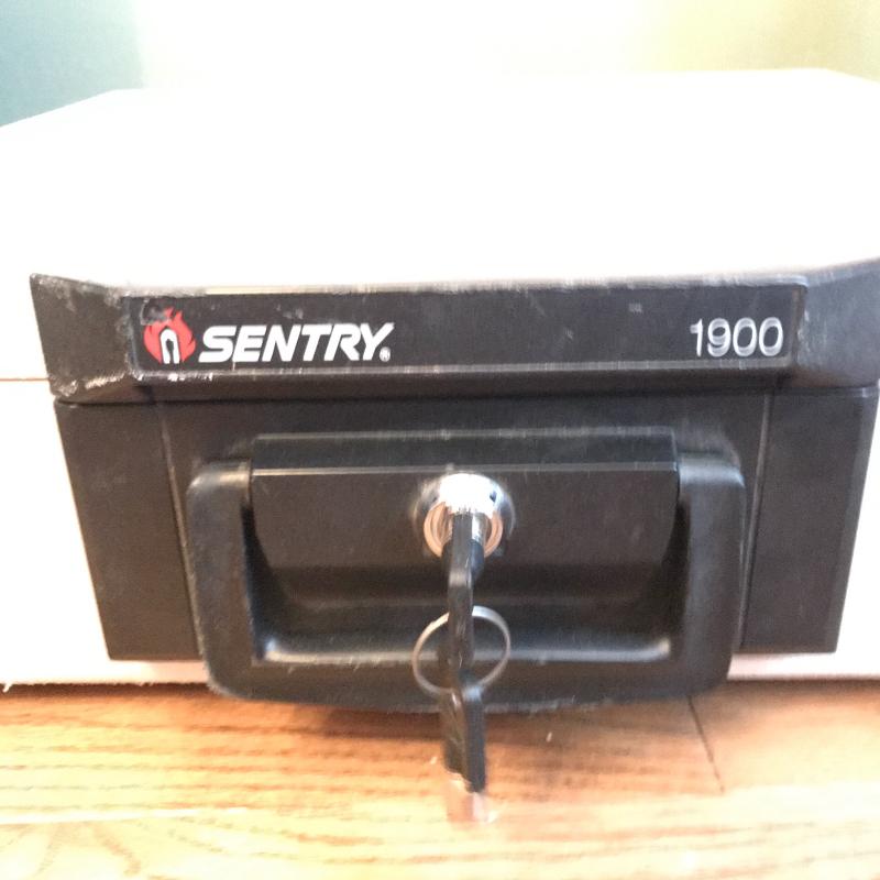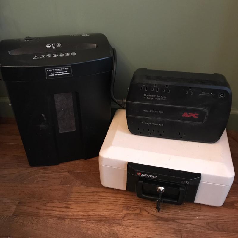 Sentry Fireproof Safe 1900 with key lock. 14”l x 10”w x 6”h. Shredder by Fellowes W-6C. Surge aprotector by APC. No shipping. Local pick up only in Flat Rock, NC.