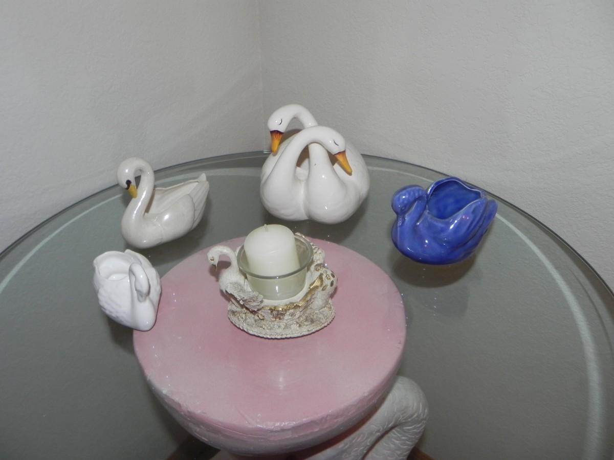 LOT 126 SWAN TABLE AND SWAN FIGURINS