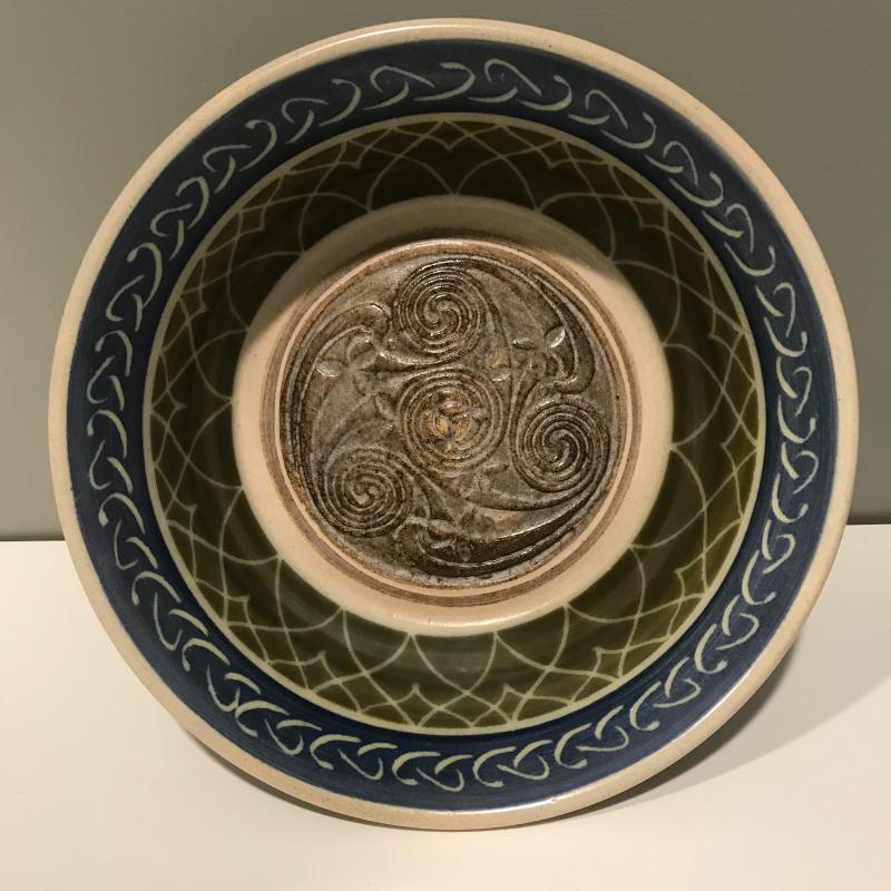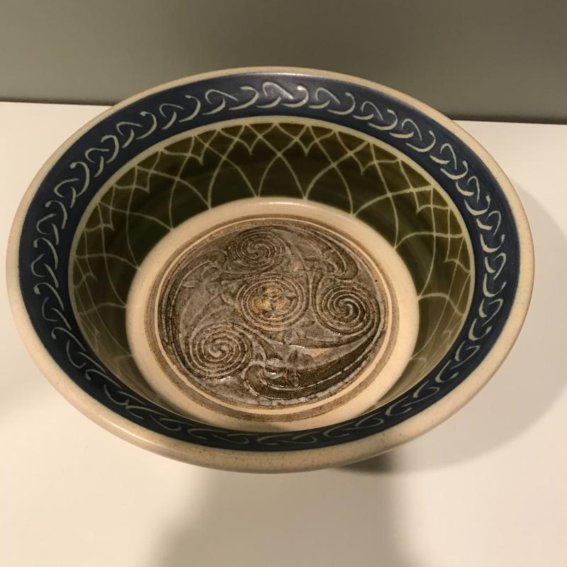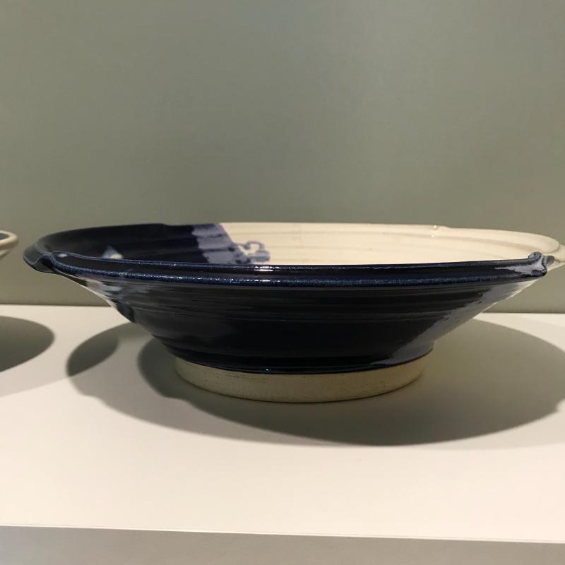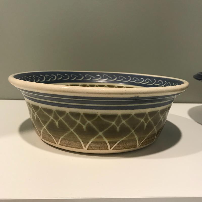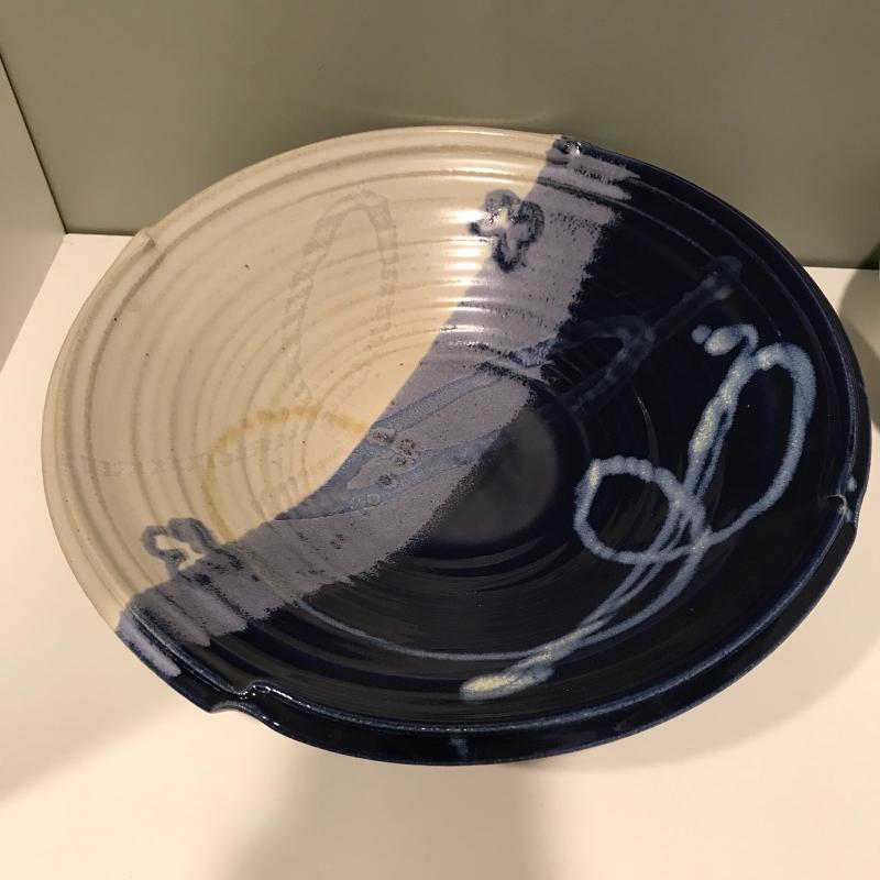 Nice blue toned trio of pottery pieces, the largest is 3.25” tall with a diameter of 12.5”. Signatures noted in photos. Local pick up or shipping available.