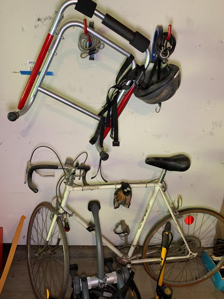 Kobe Chaparral road bike, for tall person. 2 bike racks for sedans - aluminum FoldARack and plastic Saris. Include JoeBlow bike pump, bike gloves, bike helmet, bike locks with keys. Original owner.