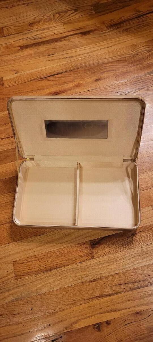 Nice condition vintage travel case with a built in mirror. Could be used for a variety of different storage tasks.