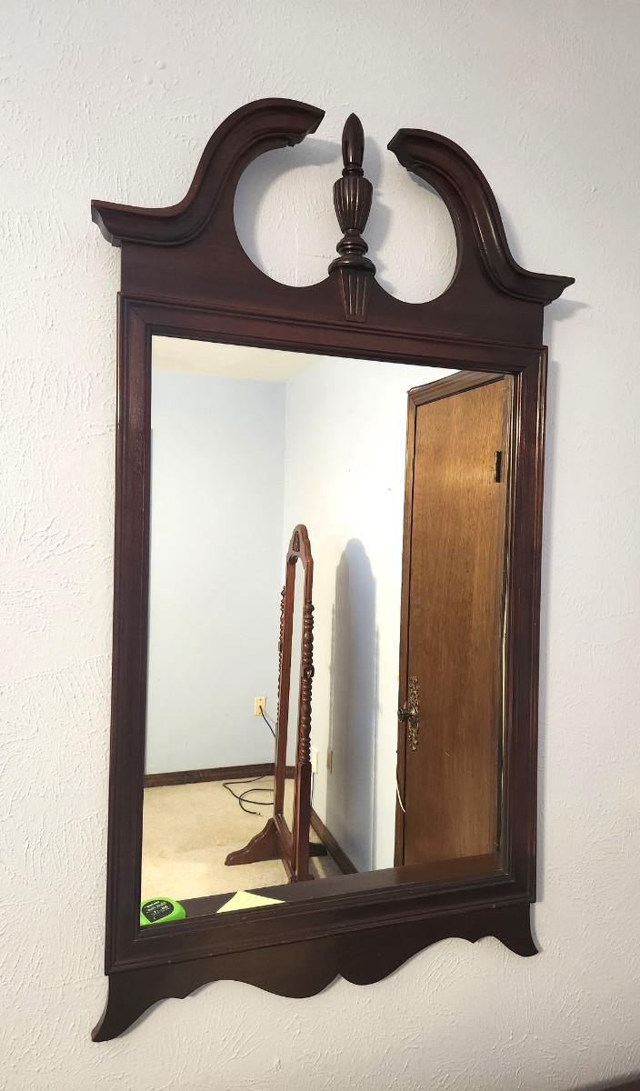 Nice traditional vintage wall mirror - 22.5" wide, 43" tall. Heavy. Solid Wood - good condition.
