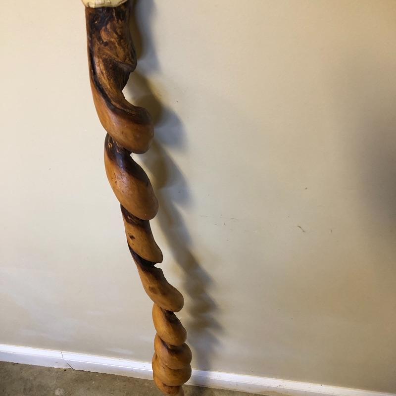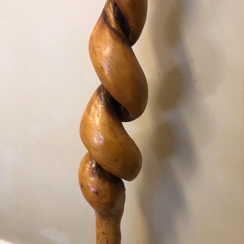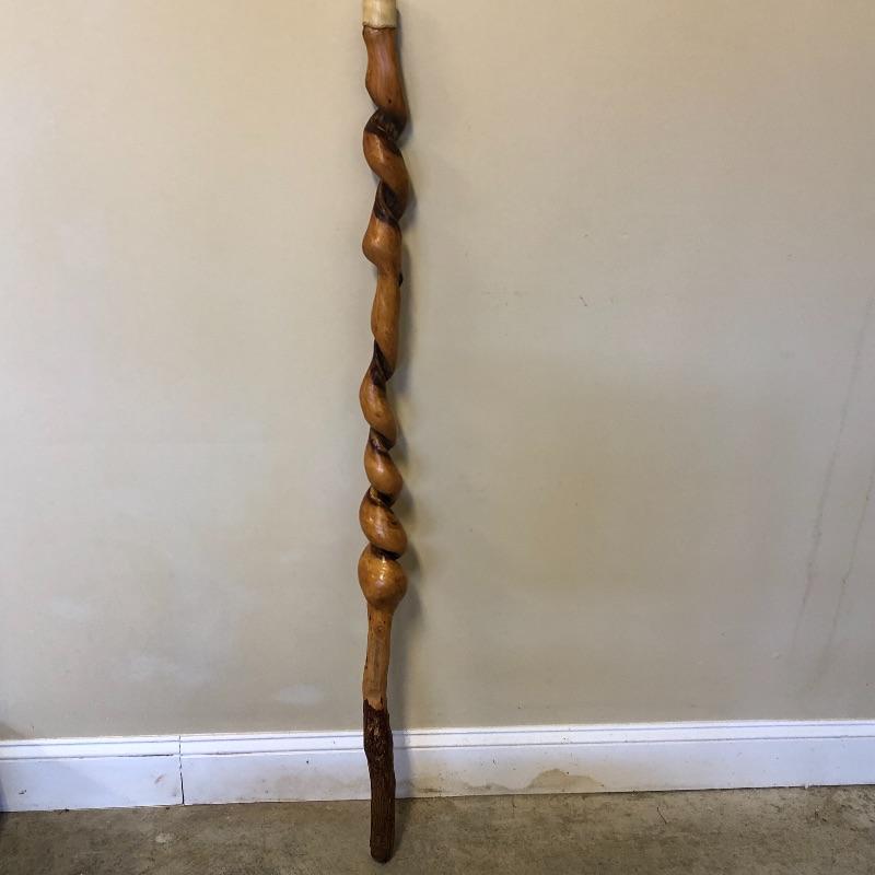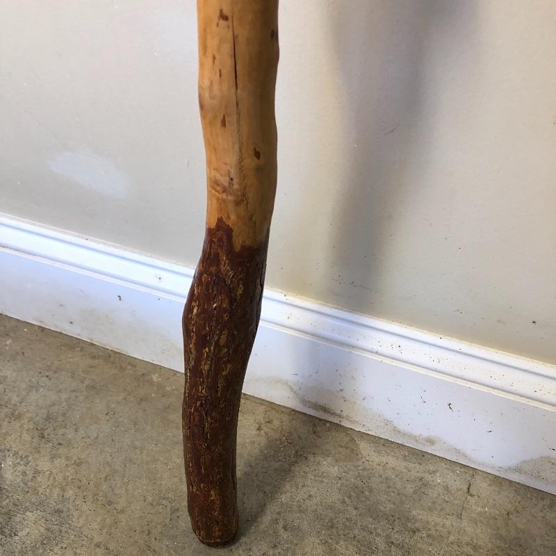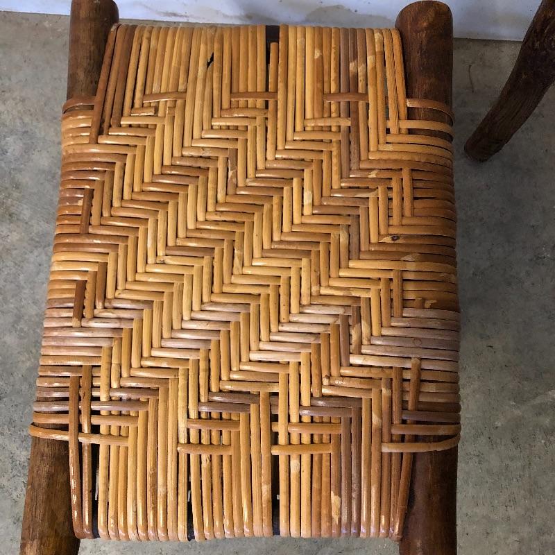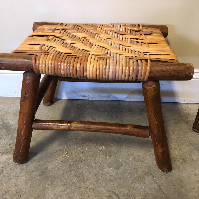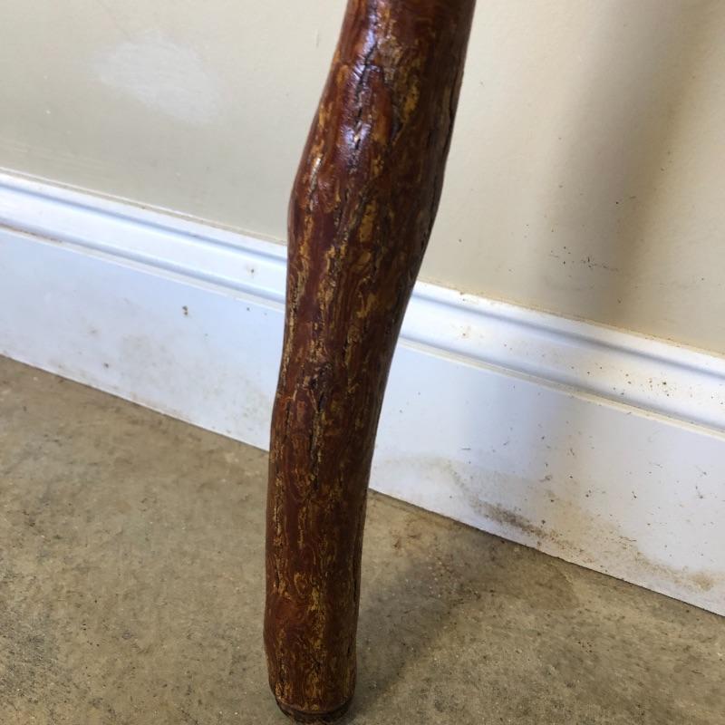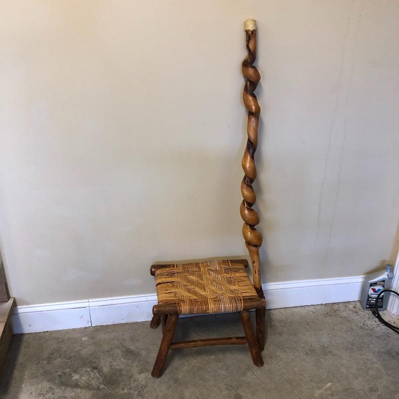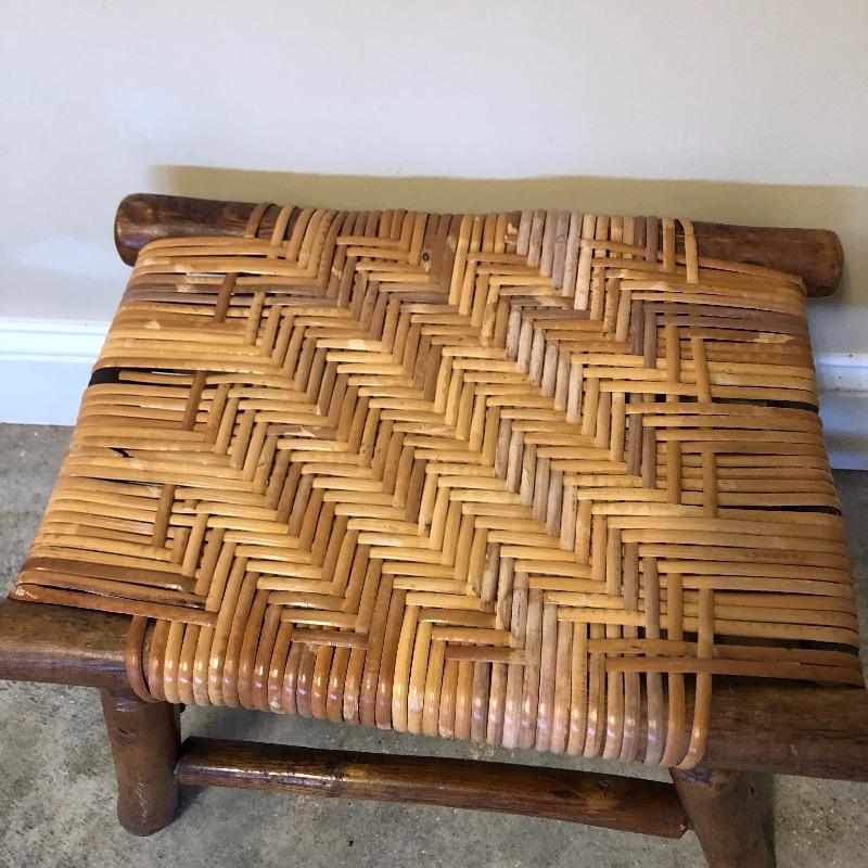 This lot contains a beautiful walking stick (50”) that appears to be carved from one piece of wood, as well as a beautiful bamboo rattan stool (16.5” x 11” x 13”). These two go beautifully together and would add some character to any home. Local pickup only.