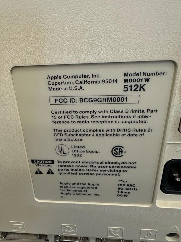 Lot 1262 Apple Macintosh 512 K vintage computer