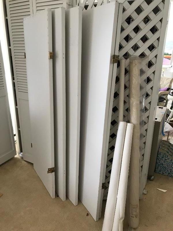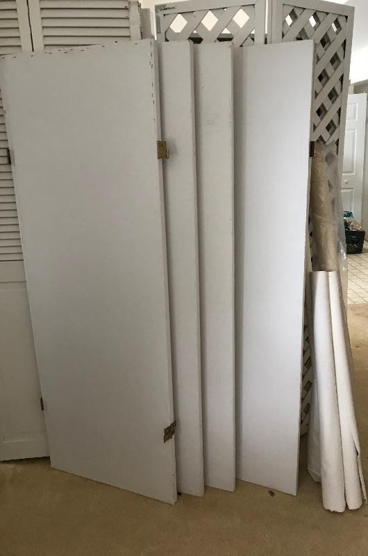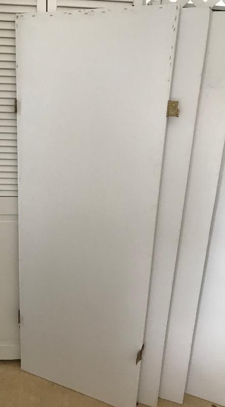 5 “doors” 3 out of 5 have hinges on them, each measures 24” wide x 66” tall. Plus a few rolls of canvas