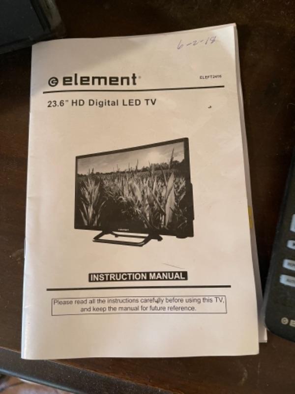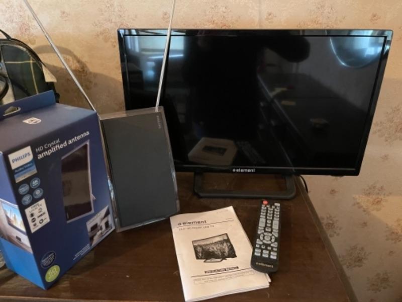 Lot 126B1. Element flat-screen television (23”) with remote and Phillips Amplify antenna--$45