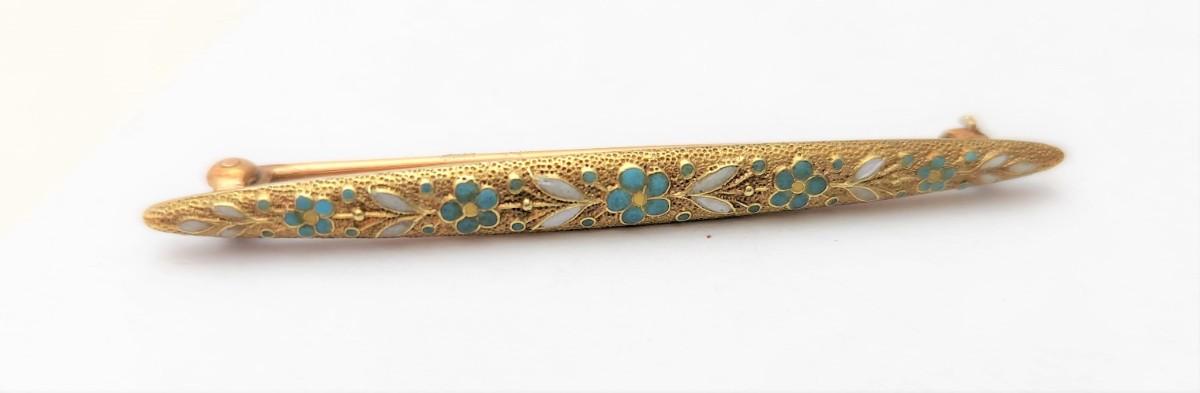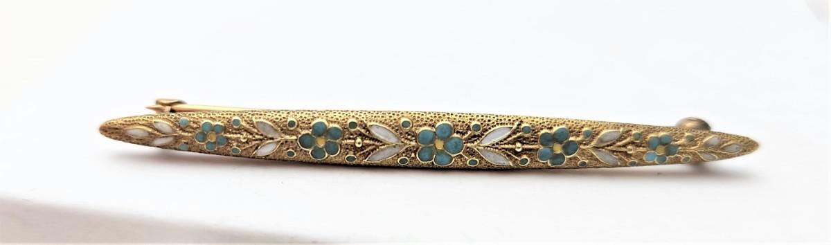 Lot #126D Antique 14kt Yellow Gold Bar Pin with Enameled Floral Design