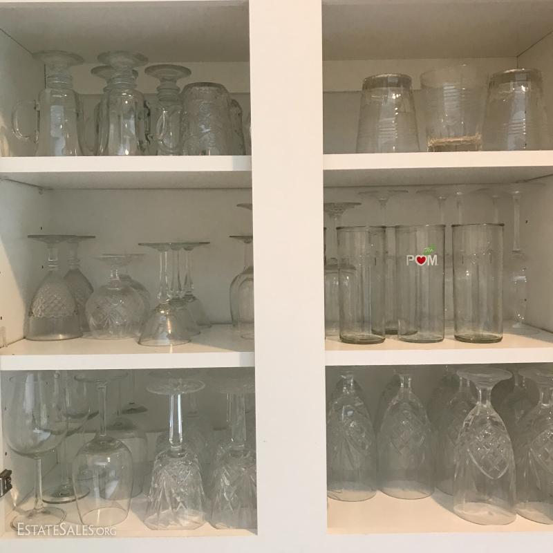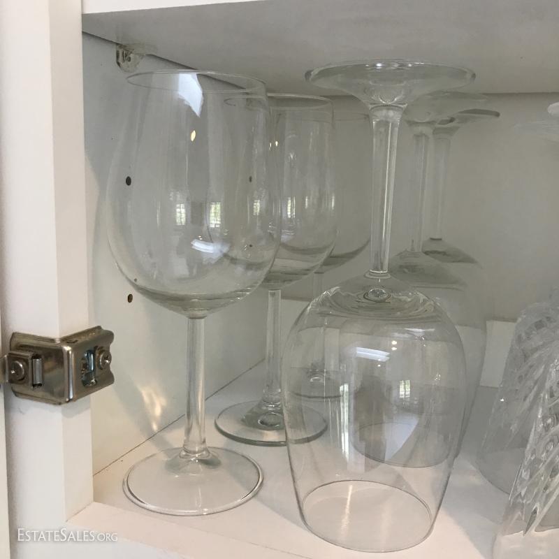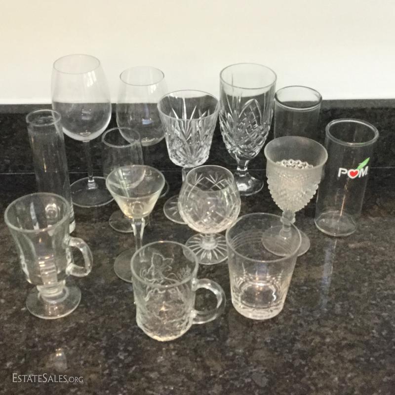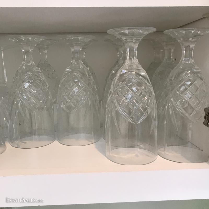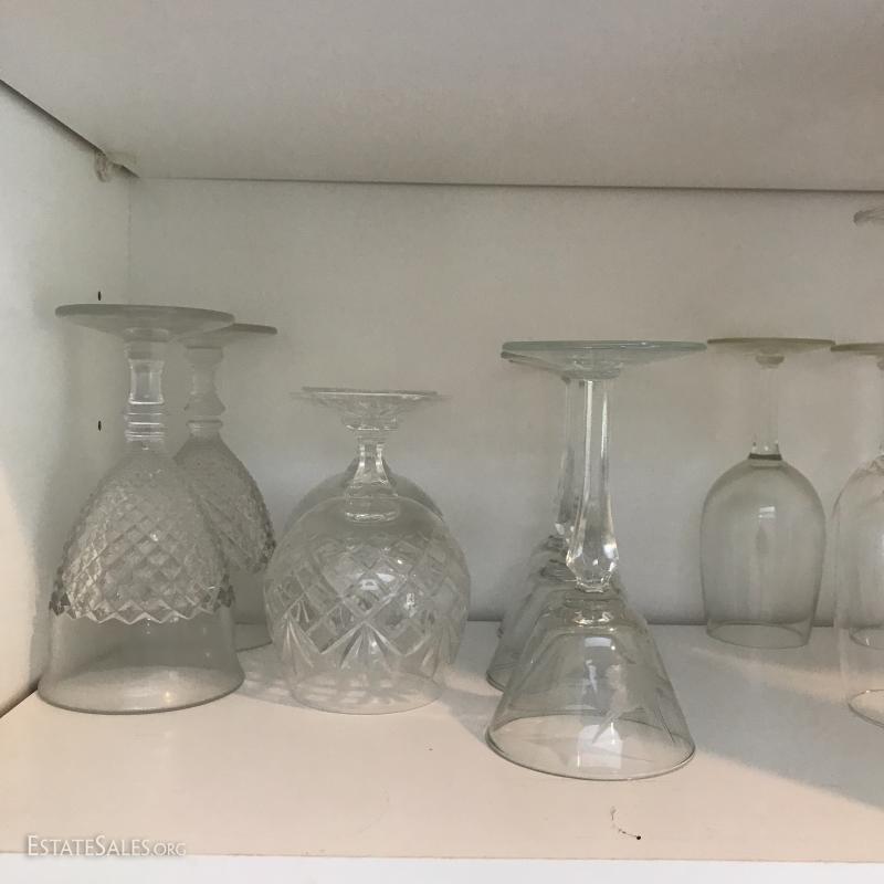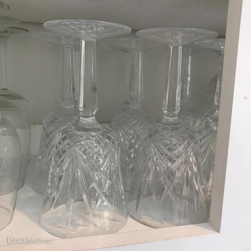 Heavy crystal water goblets and wine glasses. POM tea glasses. Other various style glassware. See photos. No Shipping. Only local pick up in Flat Rock, NC.
