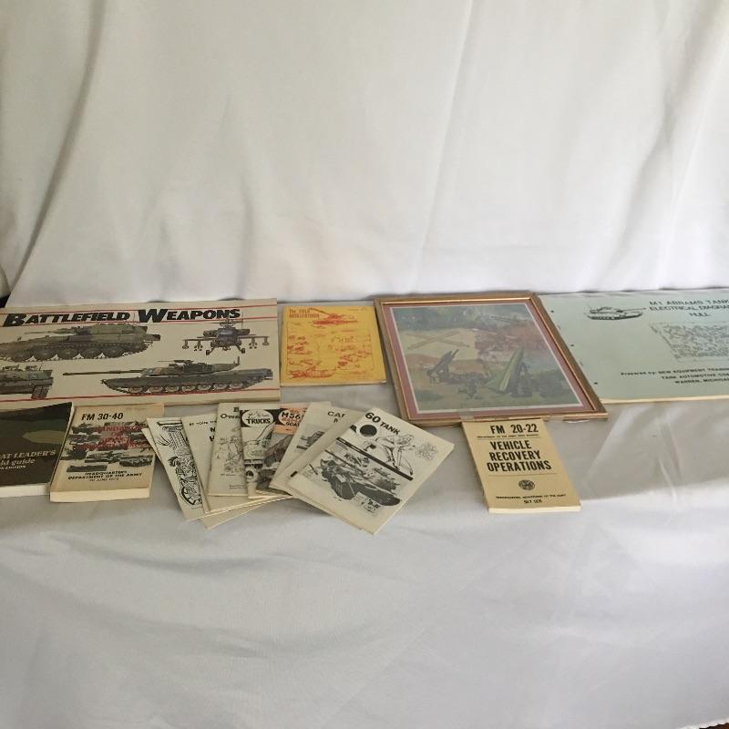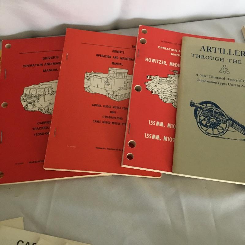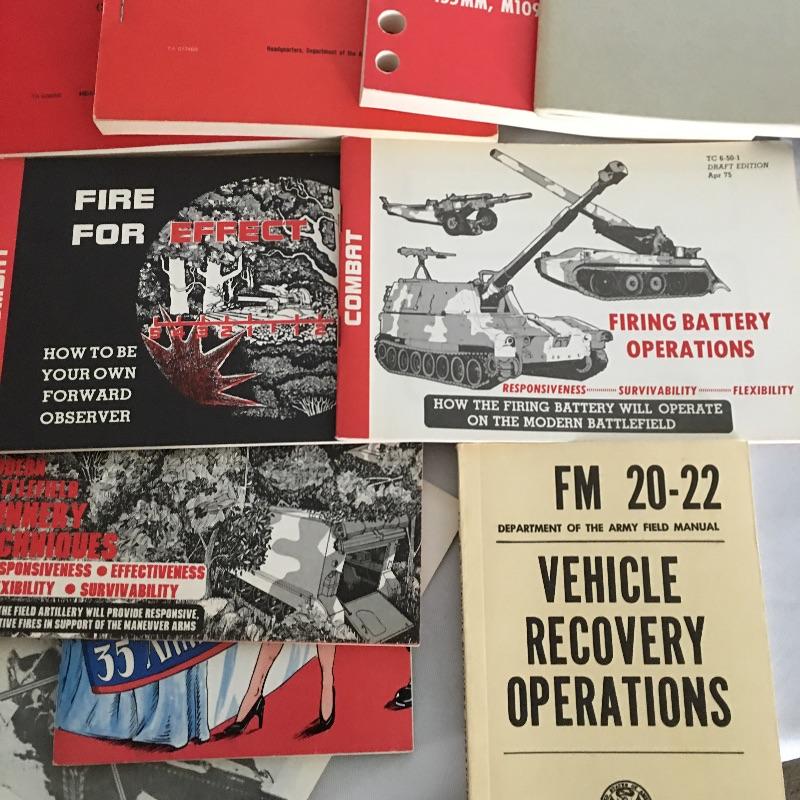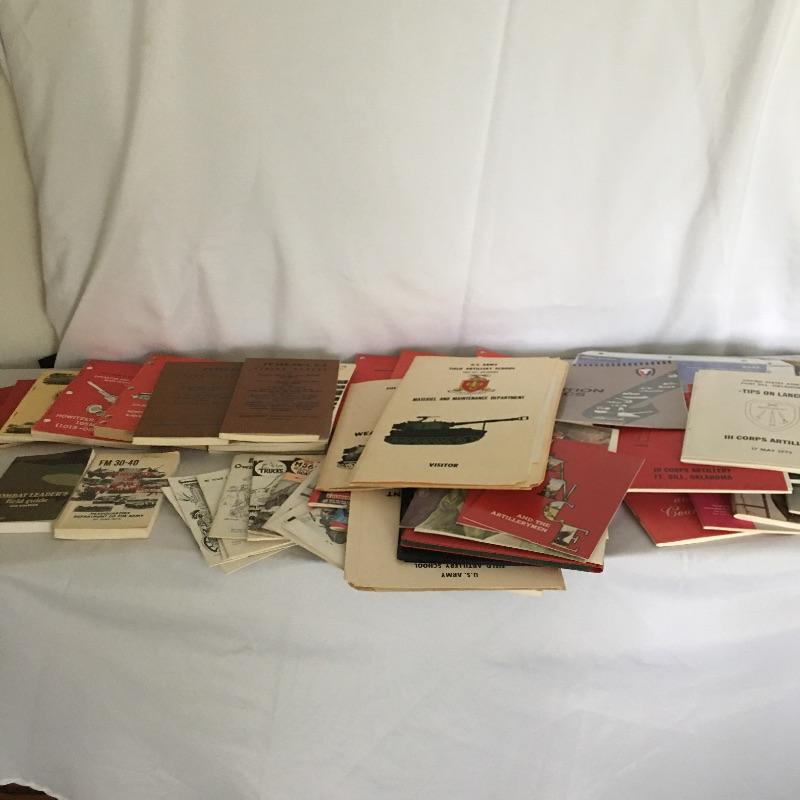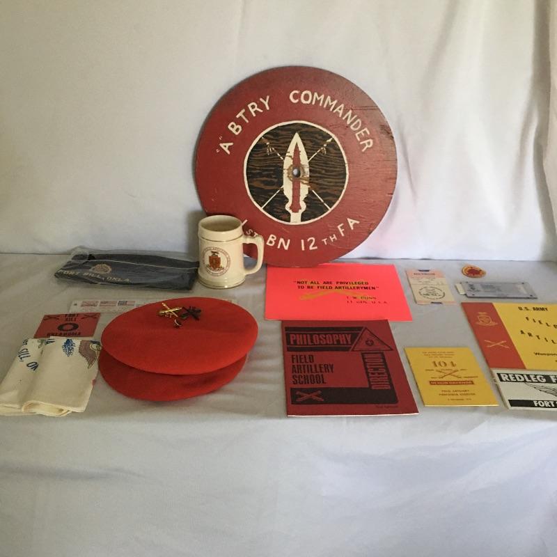 1st battalion, 12 field artillery regiment Ft Sill Oklahoma memorabilia. Lot includes two berets, Stein, two handkerchiefs, sign, and a plethora of books, photos and manuals on Artillery and more. Bring back memories of the good old days with this unique lot.